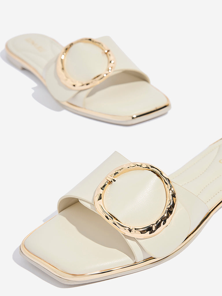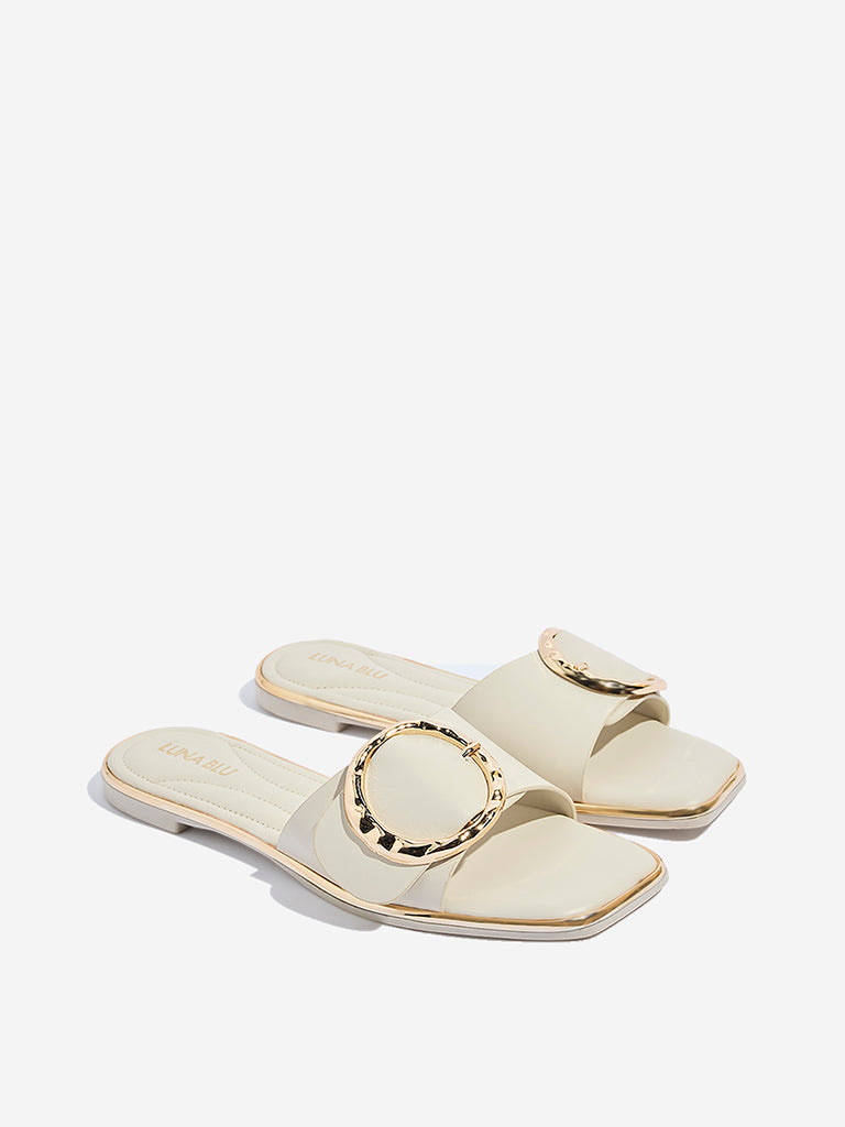 LUNA BLU Ivory Buckle Detailed Slides