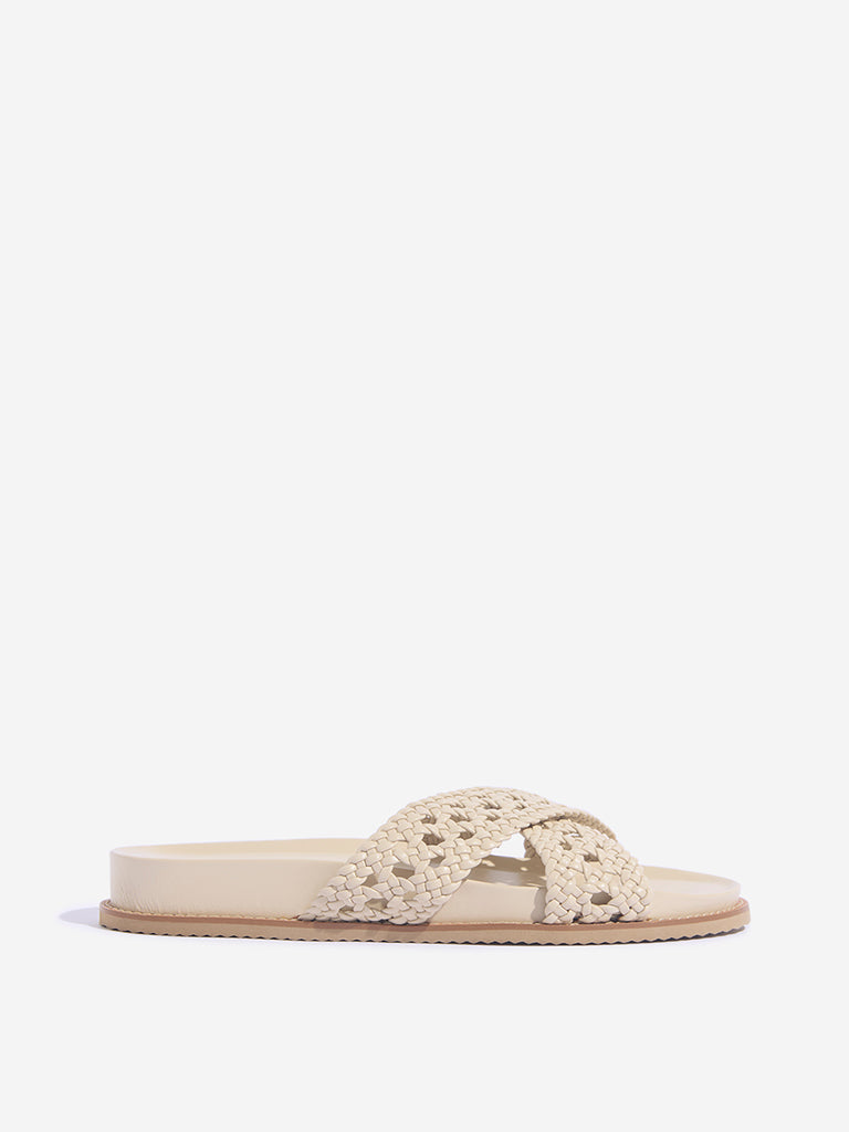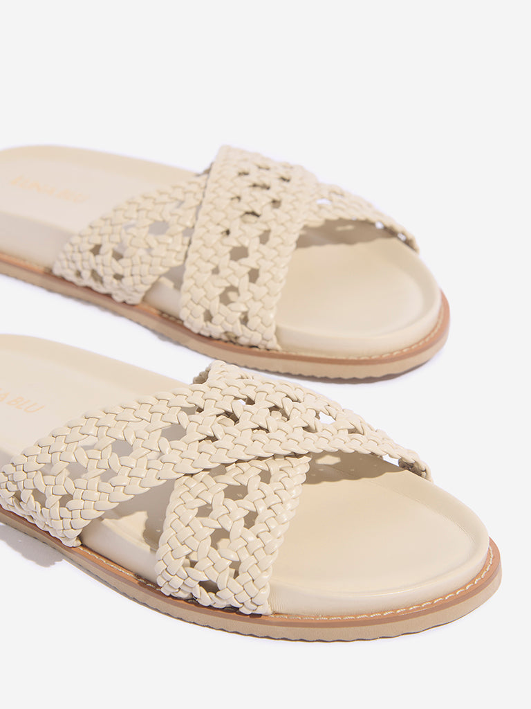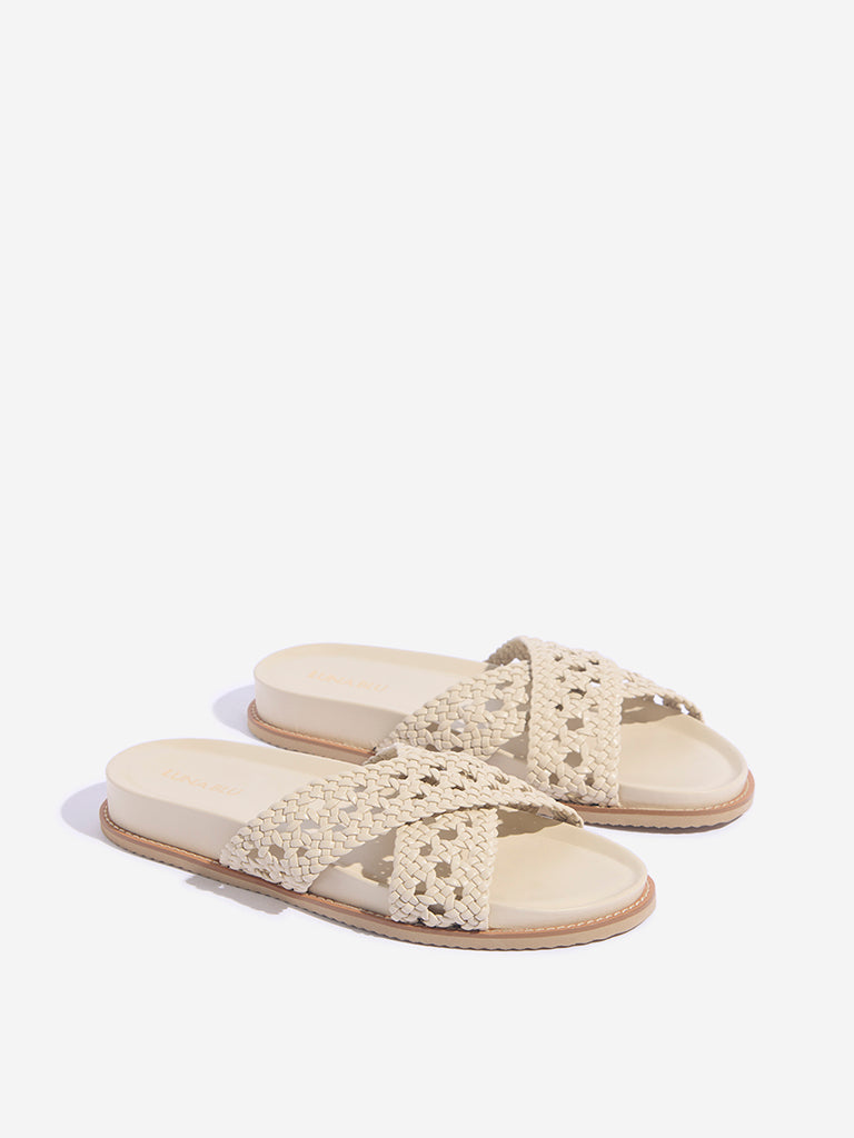 These ivory sandals from Luna Blu are fashioned with criss-cross straps that are intricately braided to add a subtle touch of texture to your everyday look. Crafted for long-lasting comfort. they come with a soft insole that cushions every step and a textured outsole that ensures grip and stability.