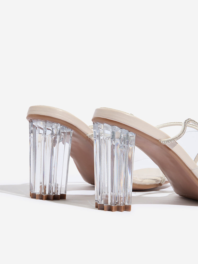 LUNA BLU Ivory Diamante Embellished Vinyl Heel Sandals