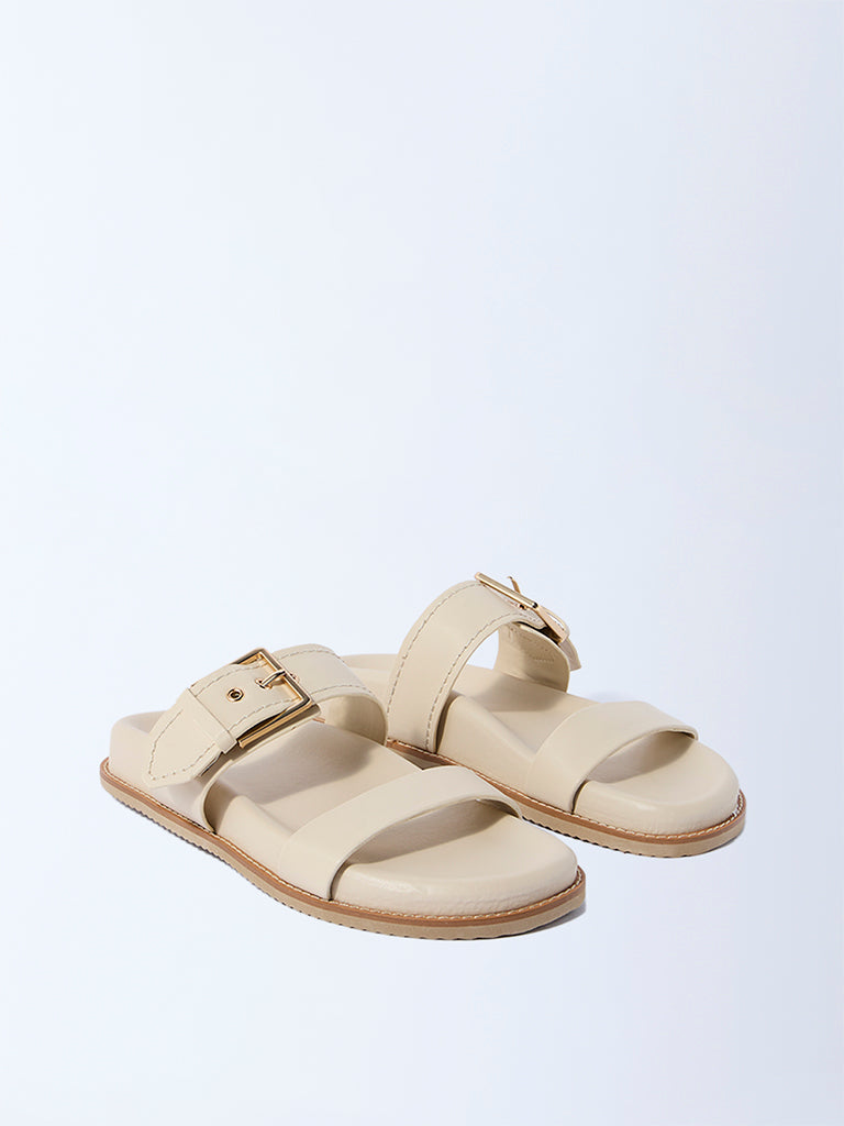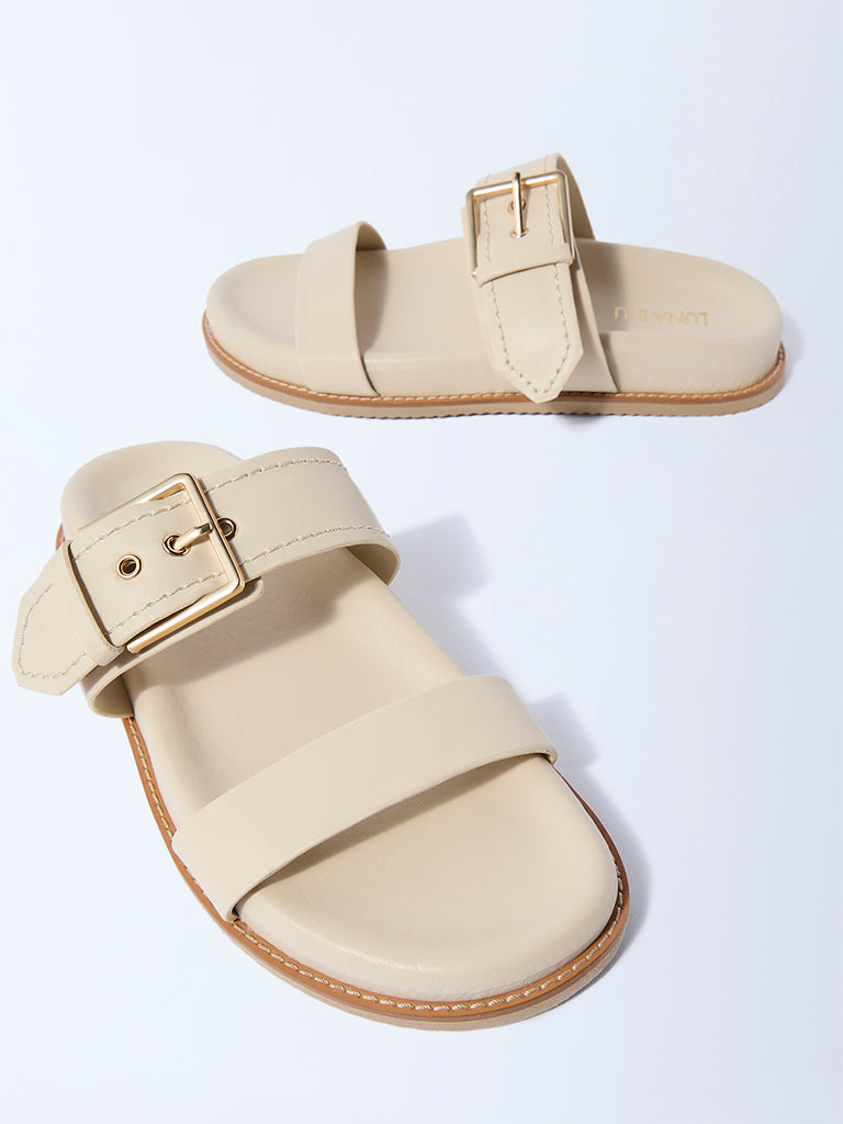 LUNA BLU Ivory Dual-Strap Slip-On Sandals