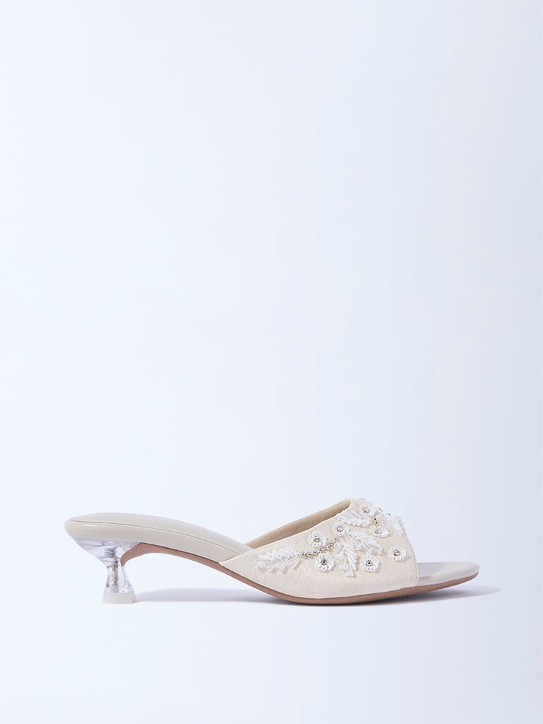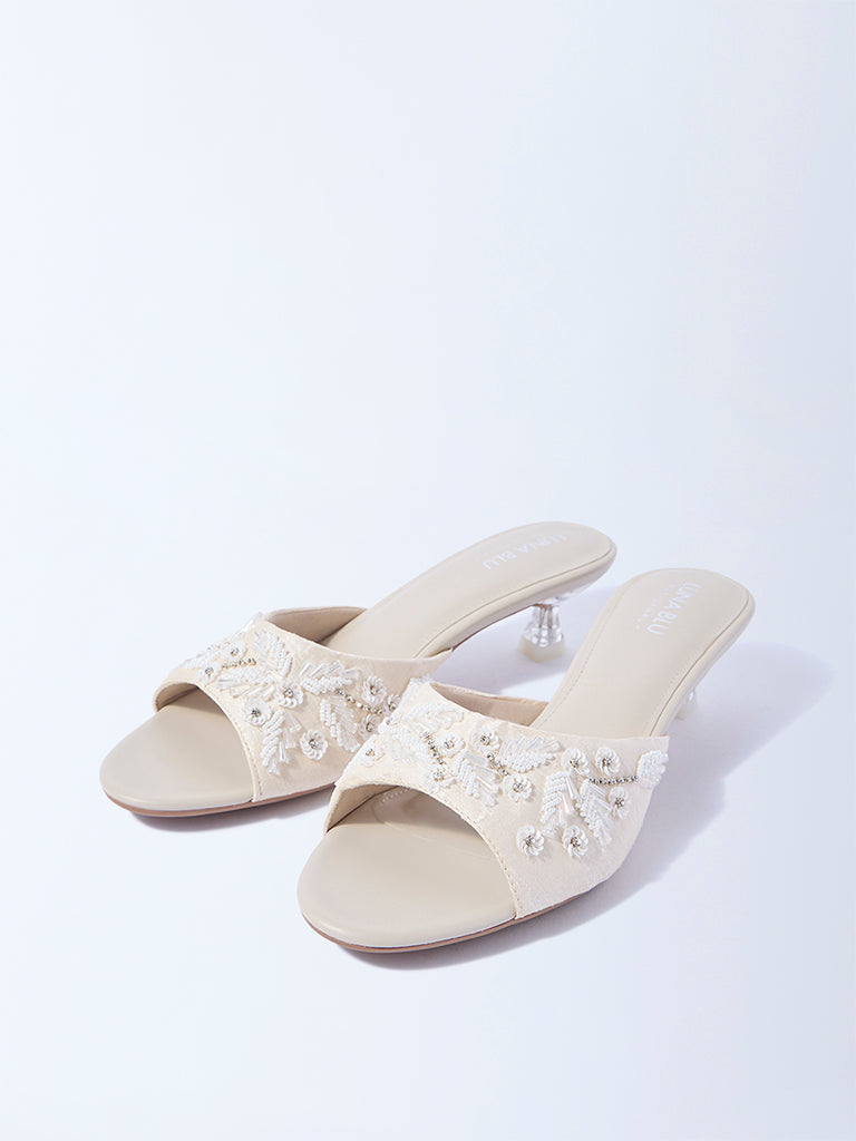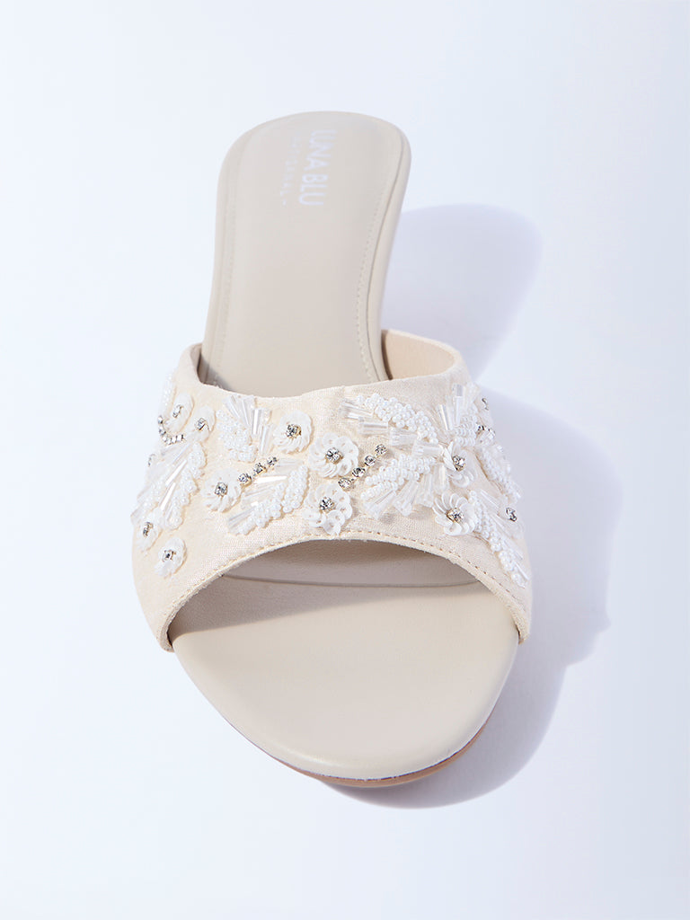 LUNA BLU Ivory Embellished Slip-On Sandals