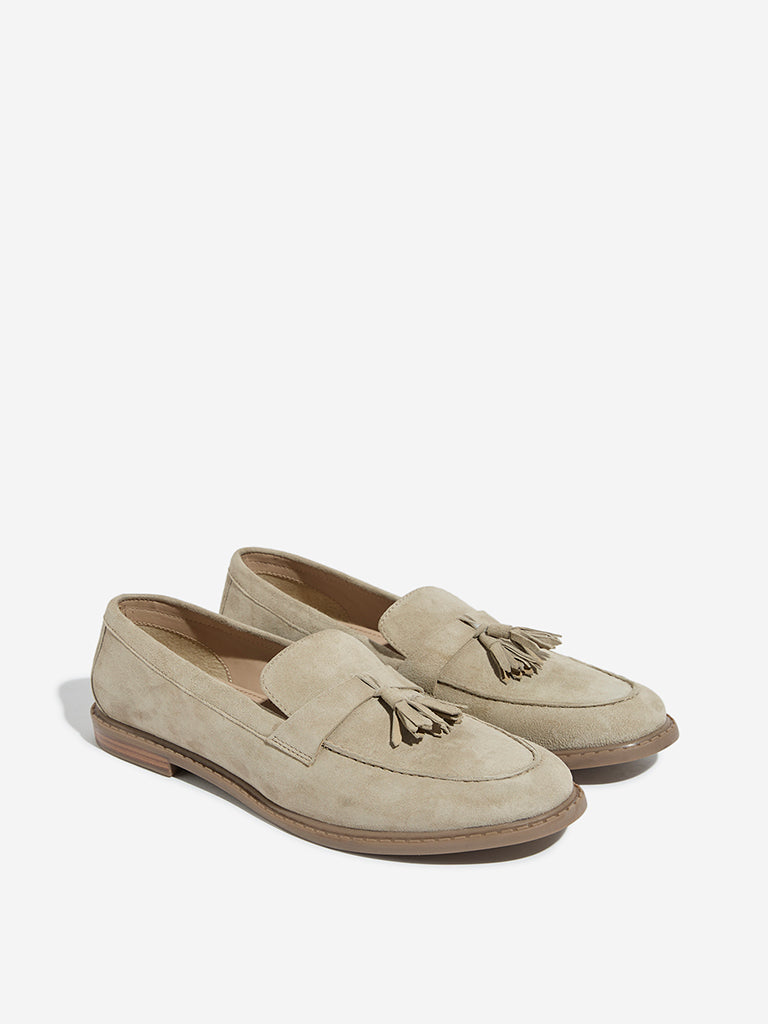 LUNA BLU Ivory Faux-Suede Tassel-Design Loafers