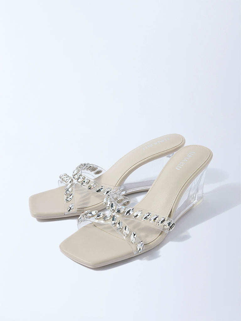 LUNA BLU Ivory Gemstone Wedge Heel Sandals