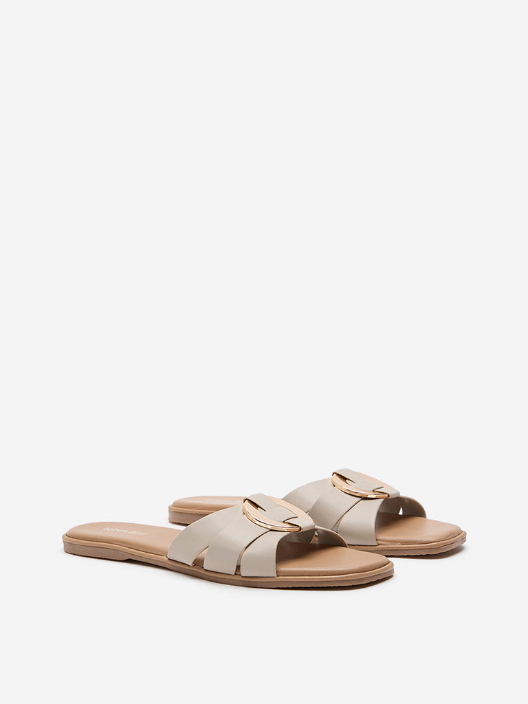 Elevate your style with the Luna Blu’s ivory slides featuring a chic multi-strap design adorned with metal detailing. Their soft insole ensures all-day comfort. while the textured outsole provides reliable traction. Perfect for effortlessly transitioning from casual outings to more polished occasions!