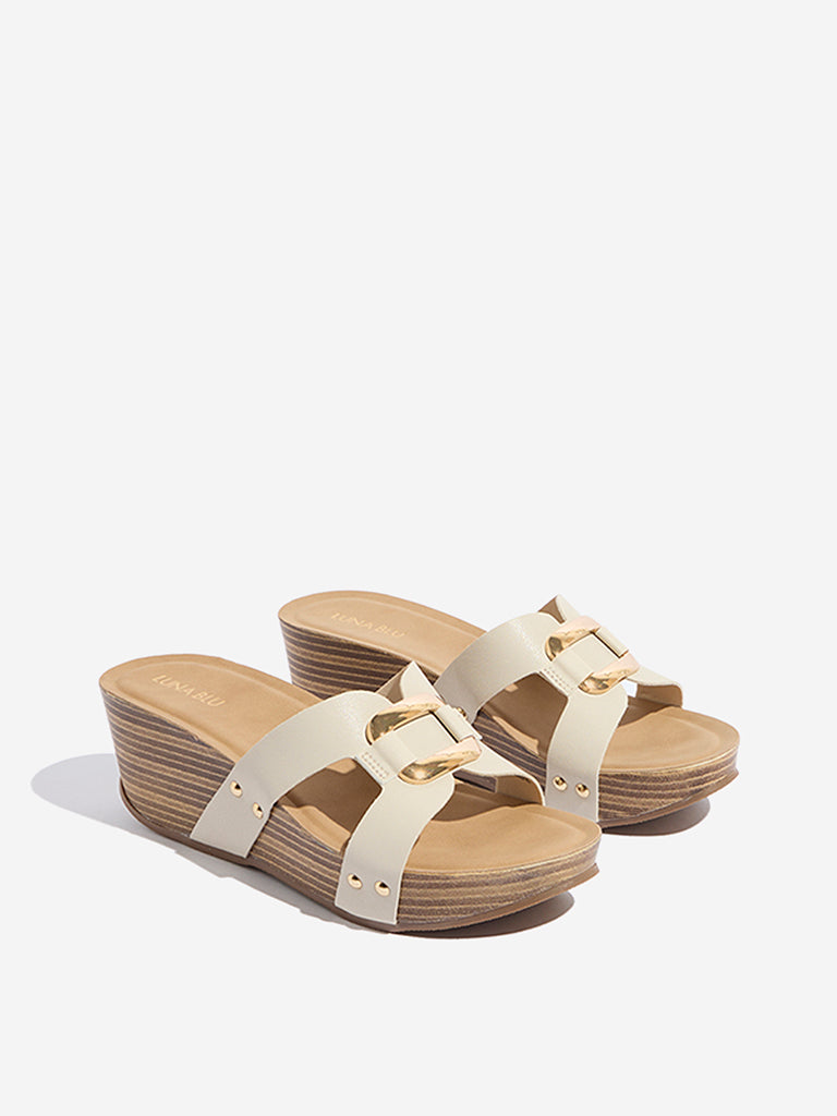 LUNA BLU Ivory Metal-Detailed Wedge Heel Sandals