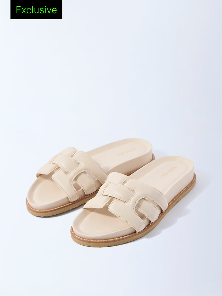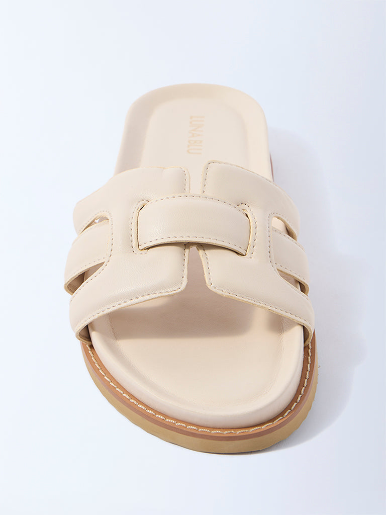 These ivory sandals from Luna Blu are a warm-weather essential that slips seamlessly from everyday errands to casual evenings out. Designed with slender straps that frame the foot effortlessly. this pair balances modern minimalism with day-long wearability. The cushioned sole keeps every step light. while the versatile ivory hue makes styling effortless.