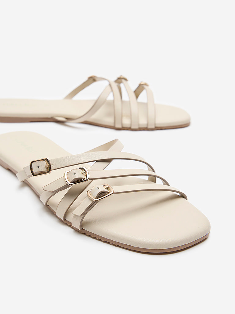 Luna Blu brings you these ivory slides in a trendy buckle-detailed multi-strap design in the upper. Their soft footbed offers all-day ease and the textured outsole ensures stability with every step. making them perfect for casual outings or laid-back days.