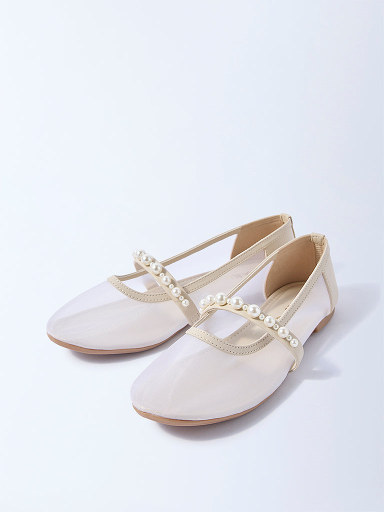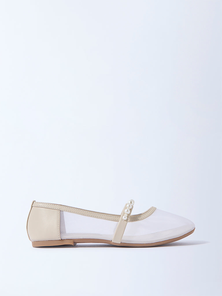 These ivory Mary Jane shoes from Luna Blu are elevated with pearl embellishments that lend a touch of elegance. Crafted with a mesh upper and finished with a cushioned footbed. they offer style and comfort in equal measure.