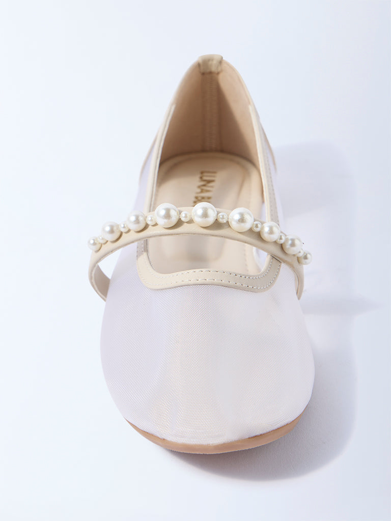 LUNA BLU Ivory Pearl Embellished Mary Jane Shoes