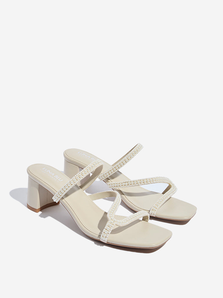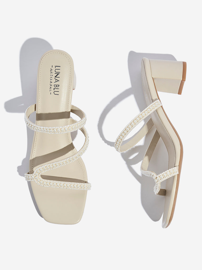 LUNA BLU Ivory Pearlescent Heel Sandals