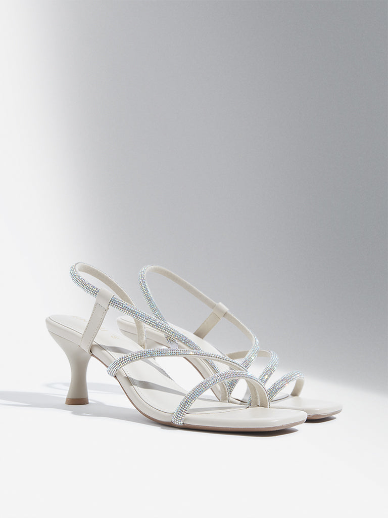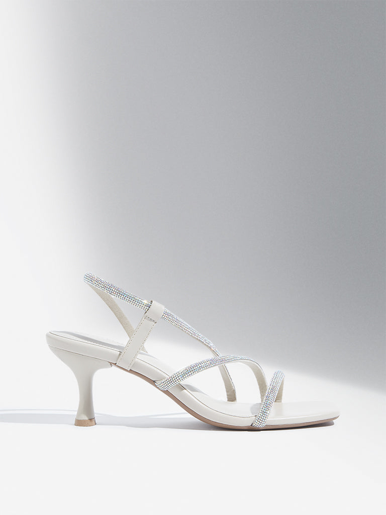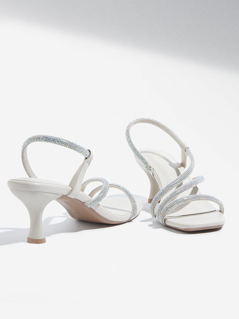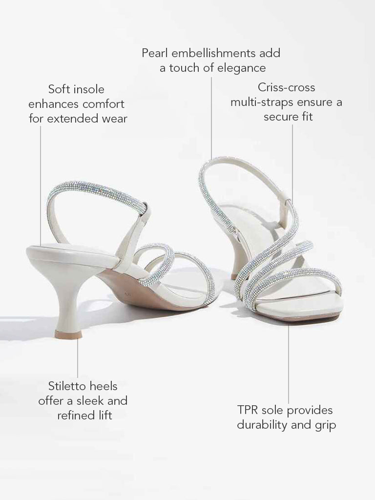Luna Blu presents this classy pair of ivory heel sandals. Designed with pearl embellishments. it features criss-cross multi-straps for top-notch fitting. Its soft insole and sturdy outsole make it a great party wear pick.