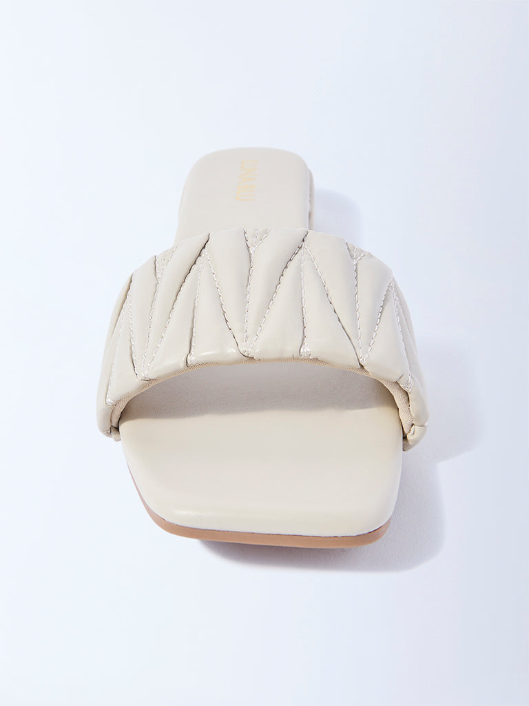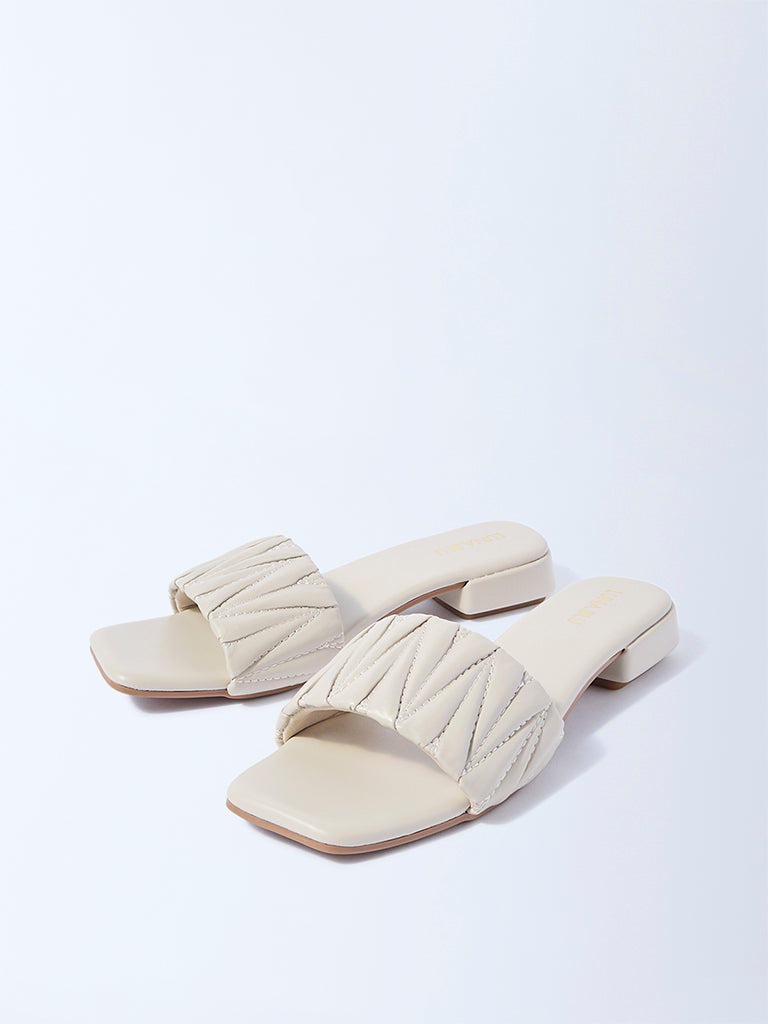 LUNA BLU Ivory Ruched Slip-On Sandals