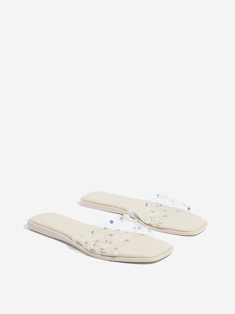Be the first to review “LUNA BLU Ivory Stud-Detailed Vinyl Slides” Cancel reply