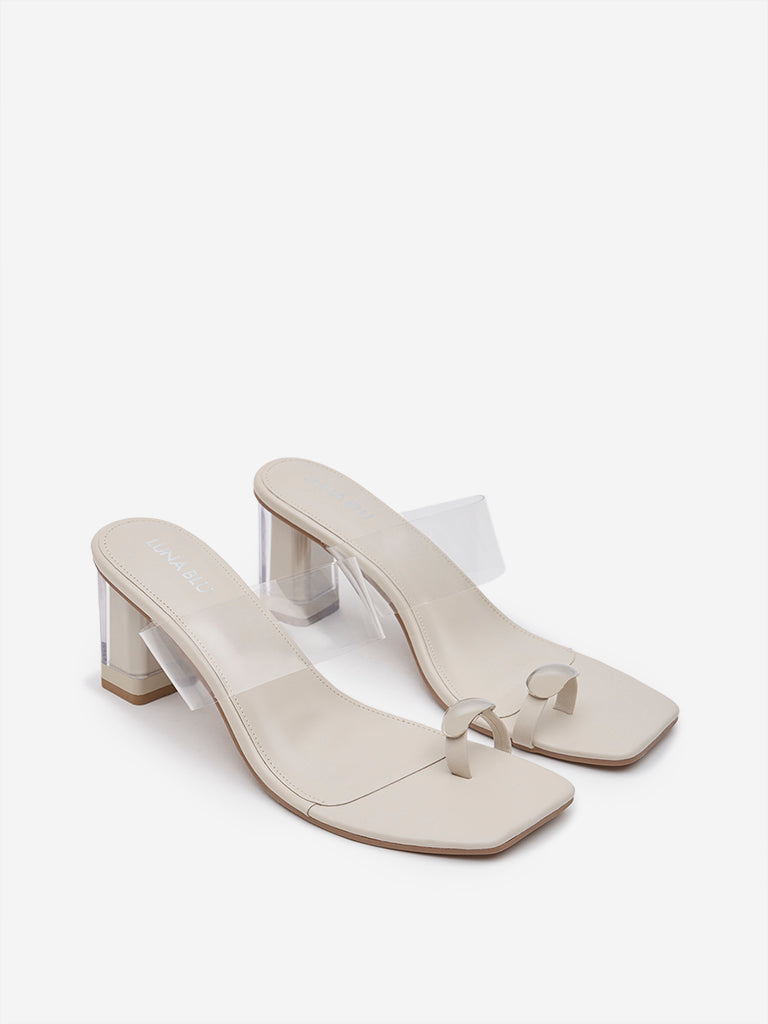 LUNA BLU Ivory Toe-Ring Vinyl Heel Sandals