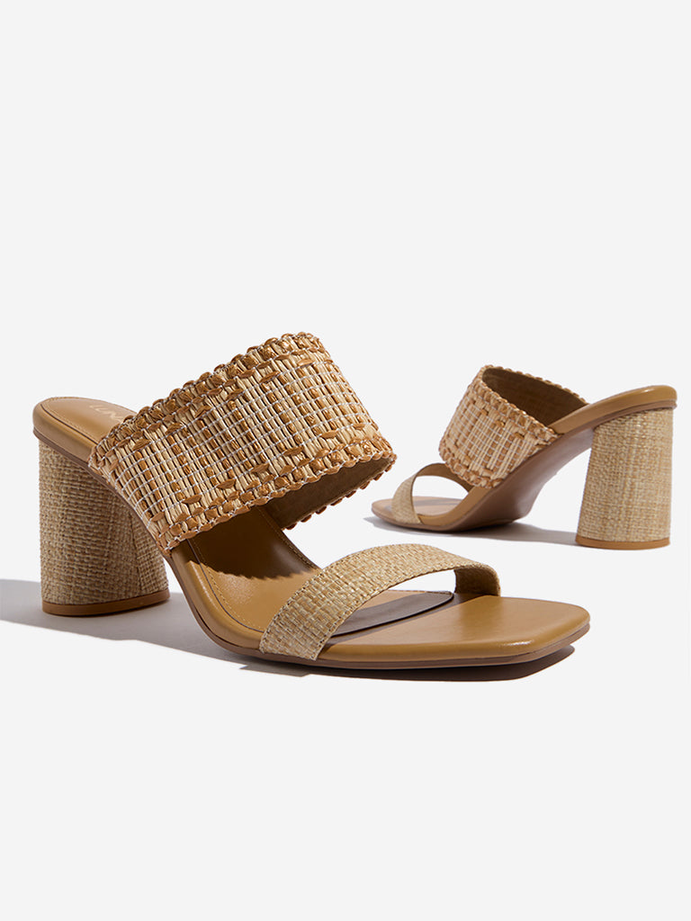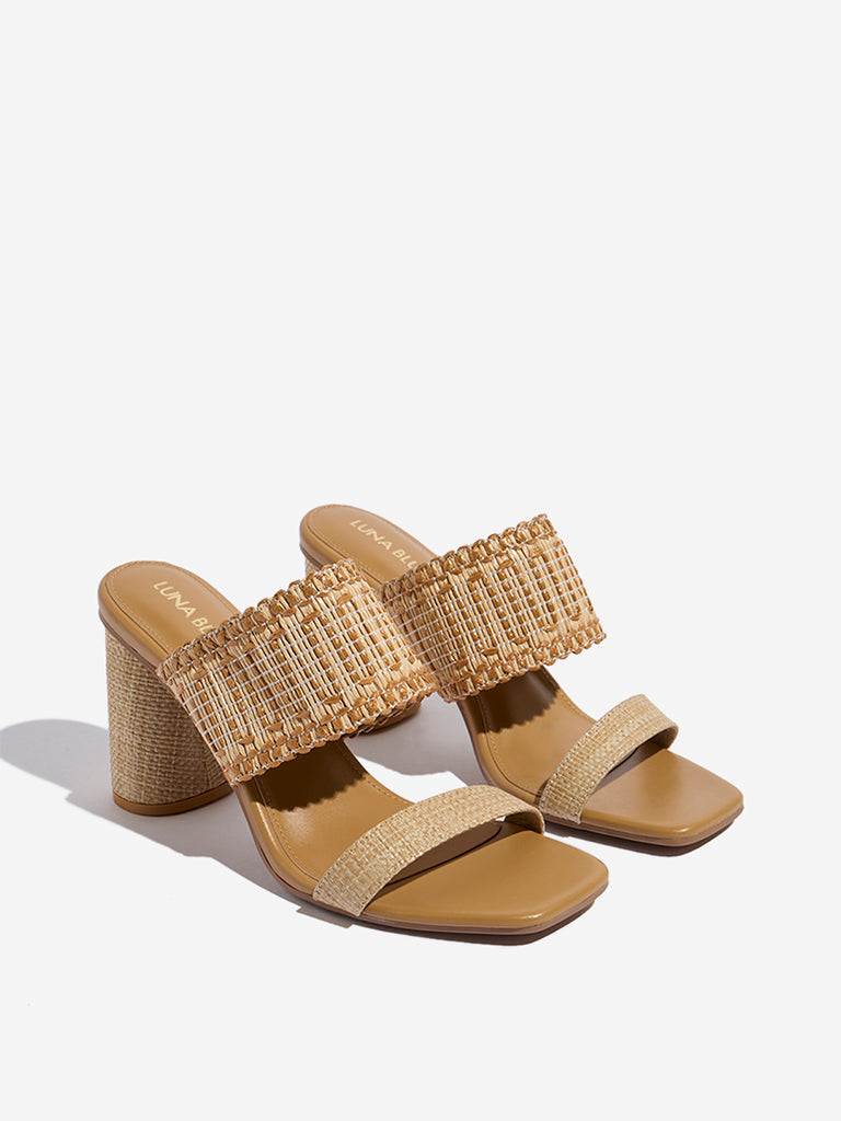 LUNA BLU Light Brown Raffia-Textured Heel Sandals