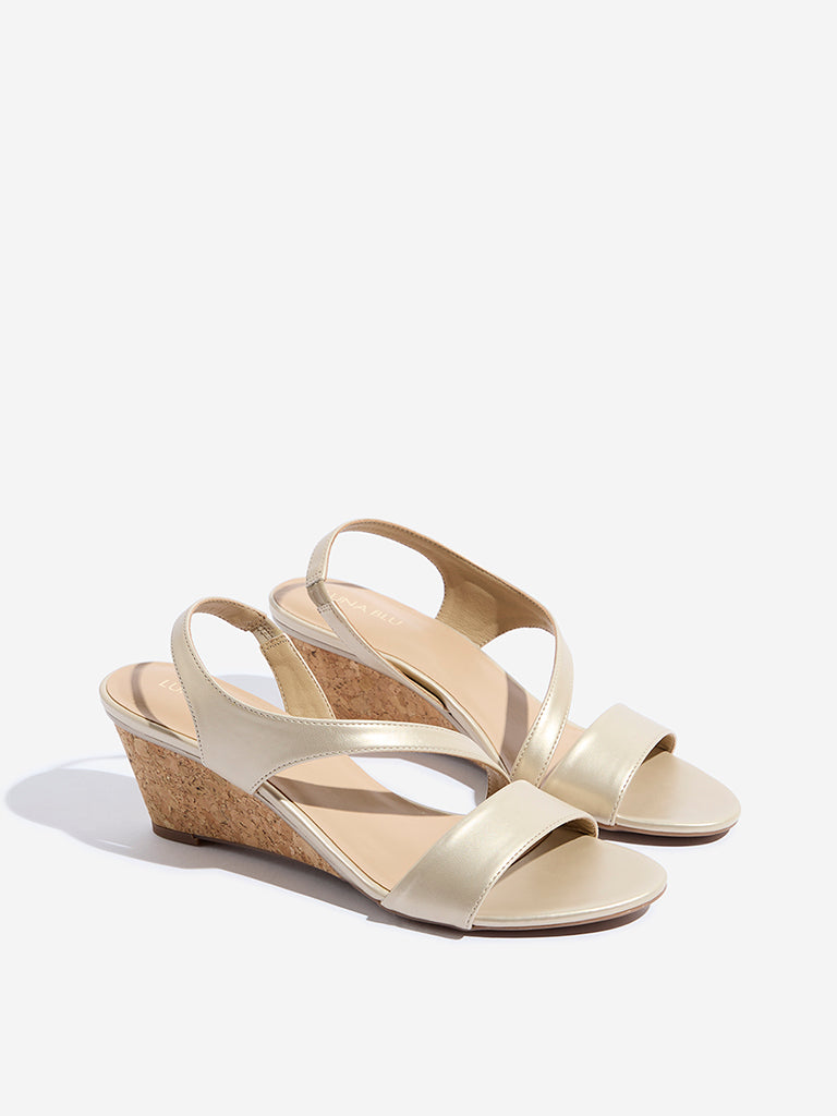 LUNA BLU Light Gold Asymmetrical Slingback Wedge Heel Sandals