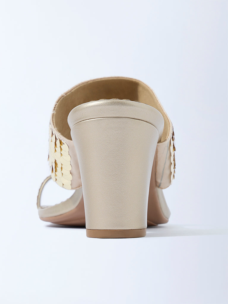 LUNA BLU Light Gold Sequin Embellished Kolhapuri Sandals