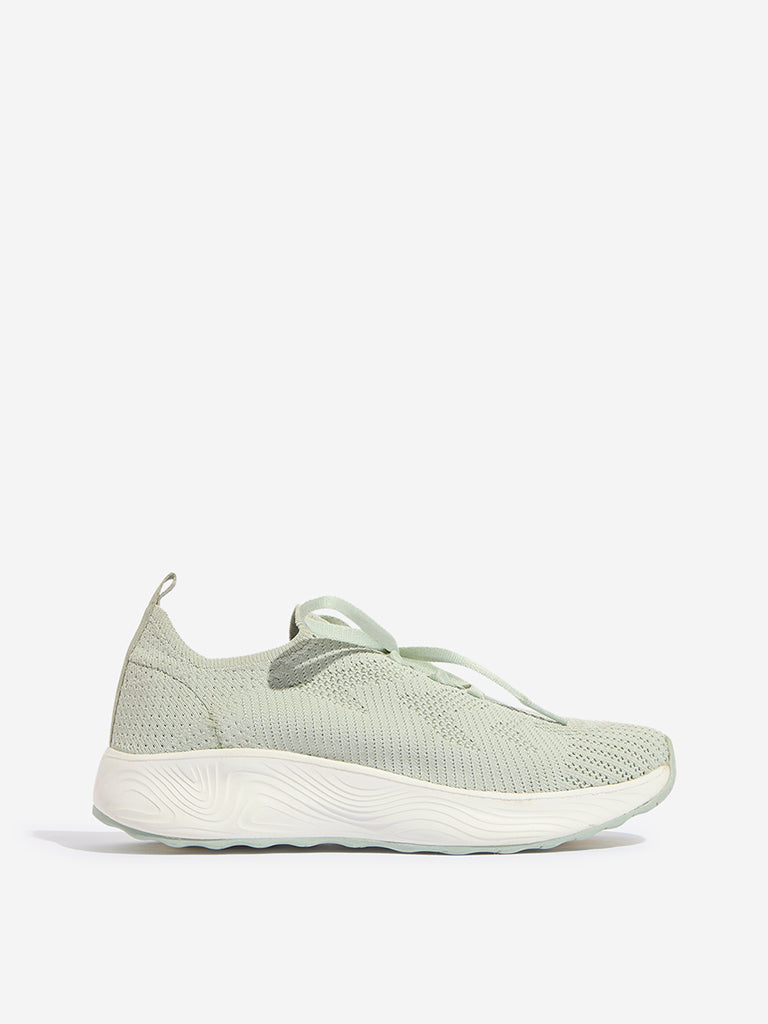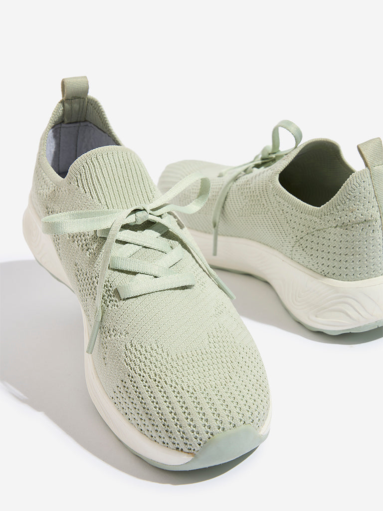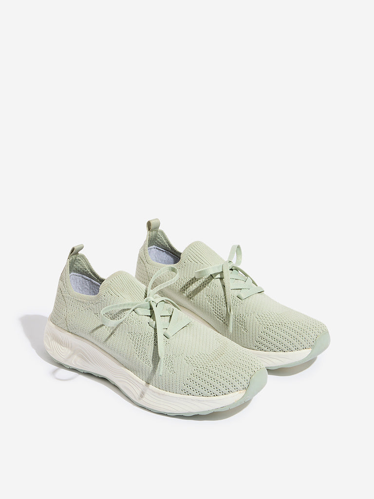 LUNA BLU Light Sage Knit-Textured Lace-Up Shoes