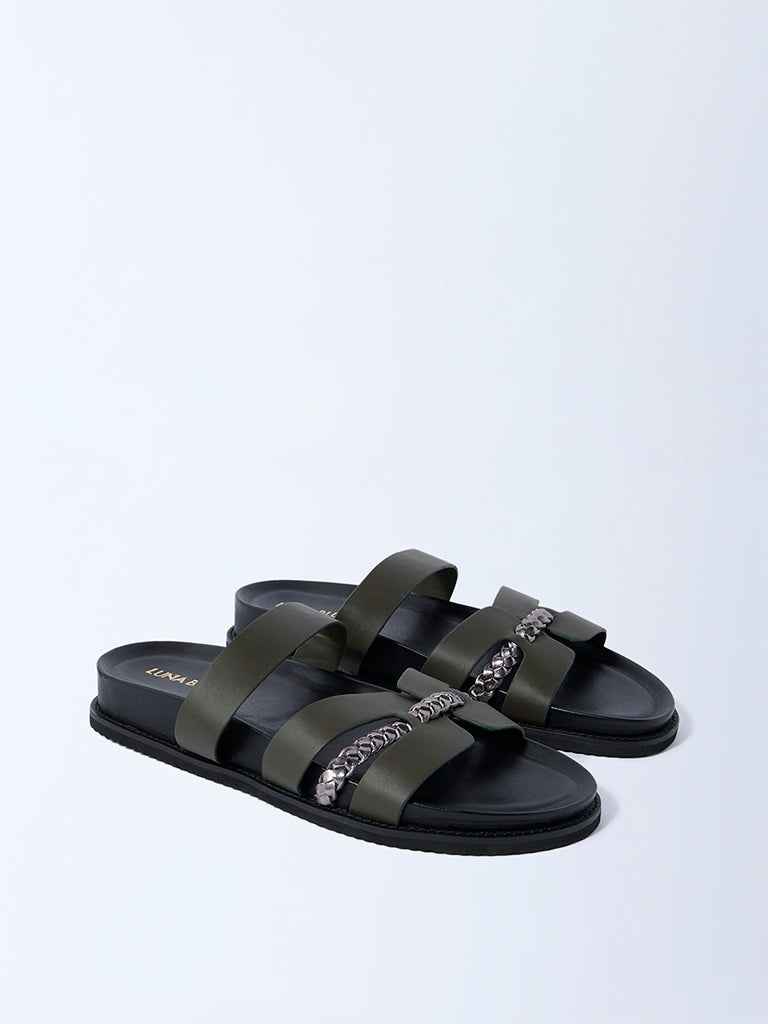 LUNA BLU Olive Multi-Strap Slip-On Sandals