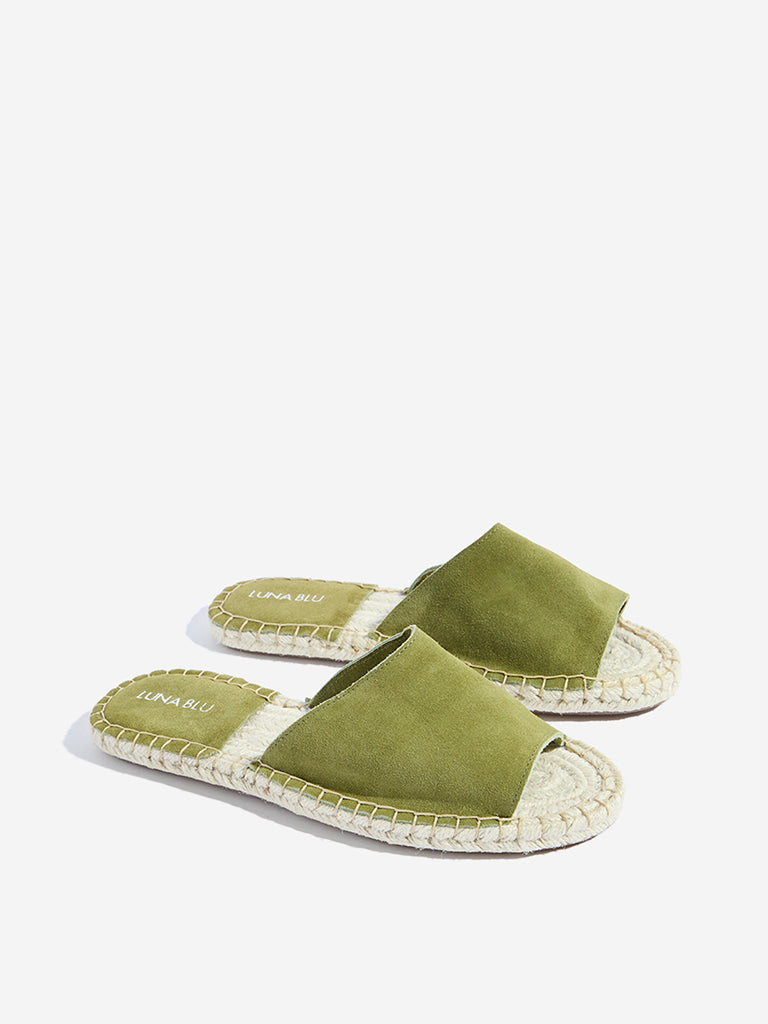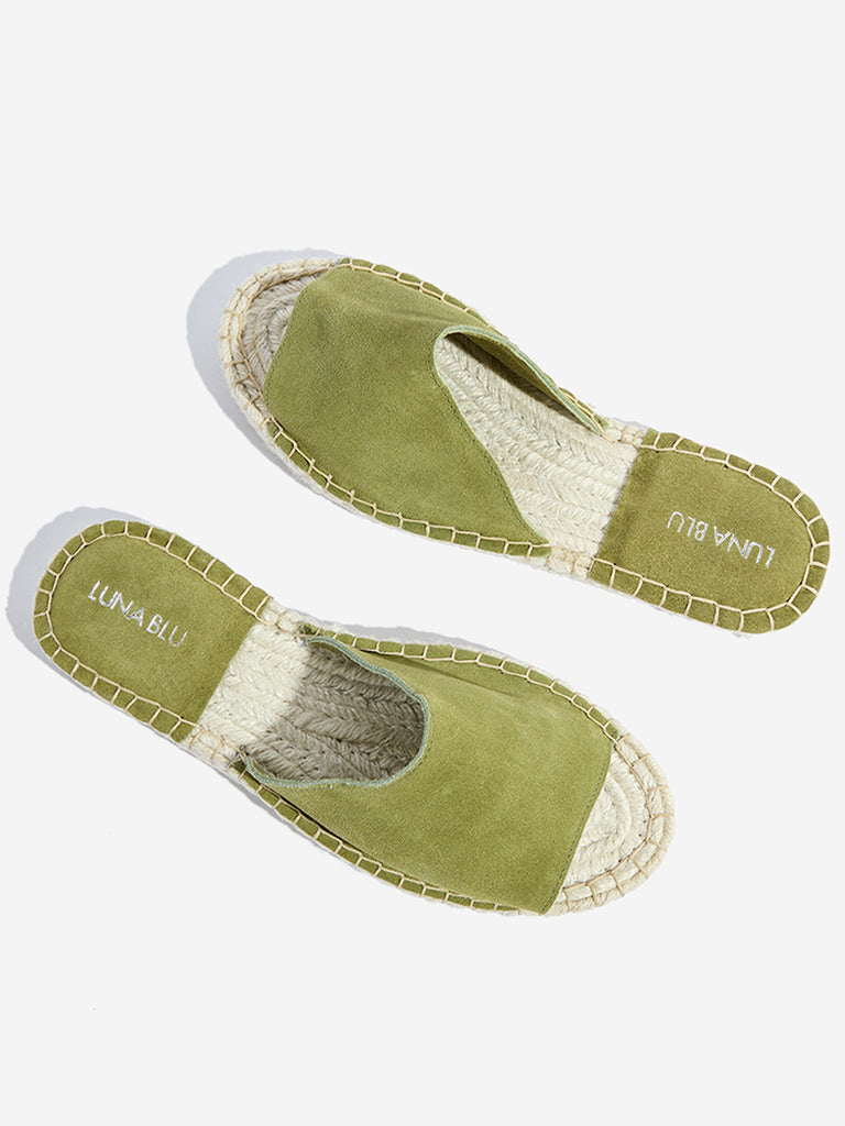 Be the first to review “LUNA BLU Olive Suede Espadrille Slides” Cancel reply