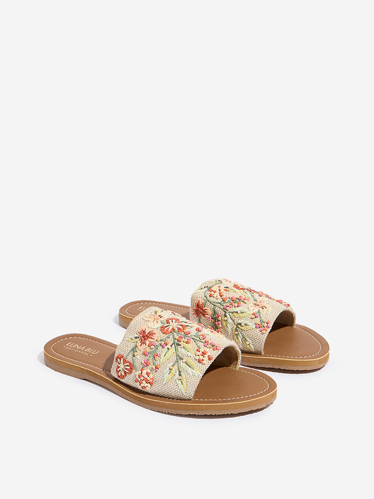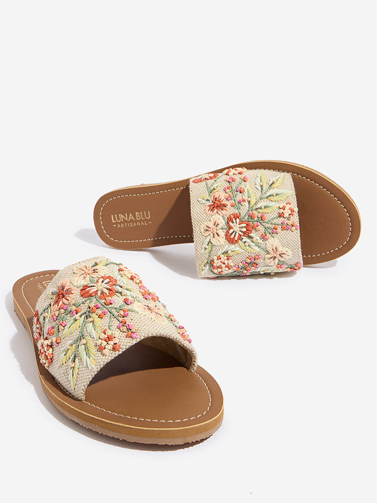 LUNA BLU Orange Floral Embroidered Slides