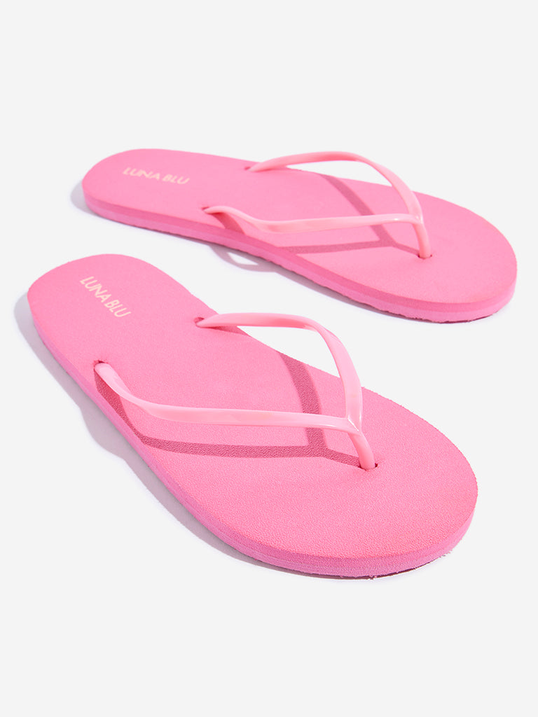 Make your footwear regimen a comfortable affair with these pink flip-flops from Luna Blu. Designed in a minimalistic profile. they are adorned with thong straps and come finished with slip-resistant outsoles.