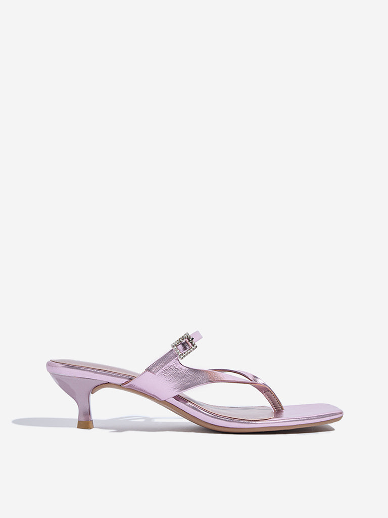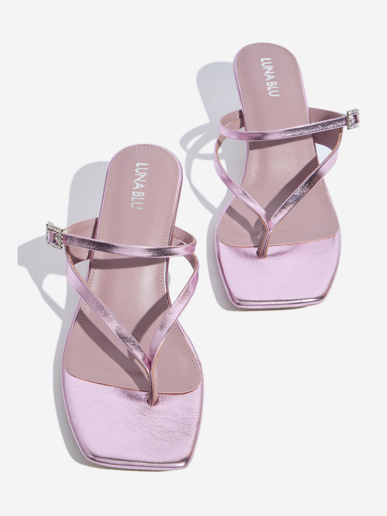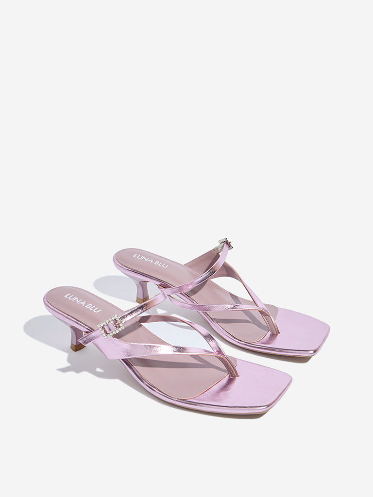 LUNA BLU Pink Thong-Strap Metallic Heel Sandals