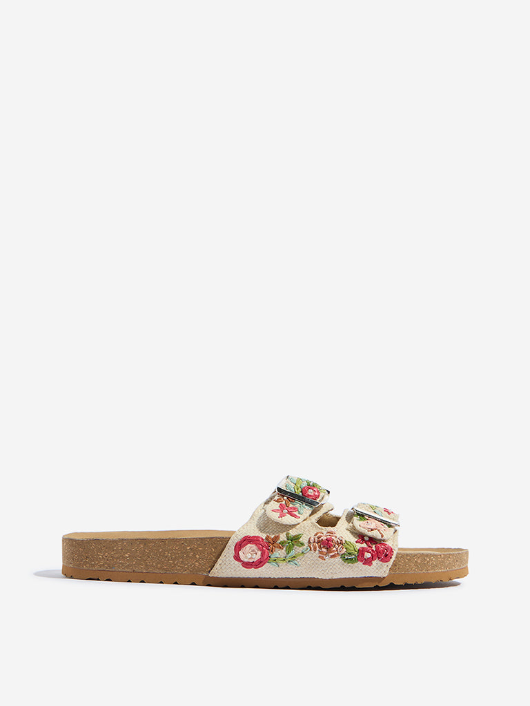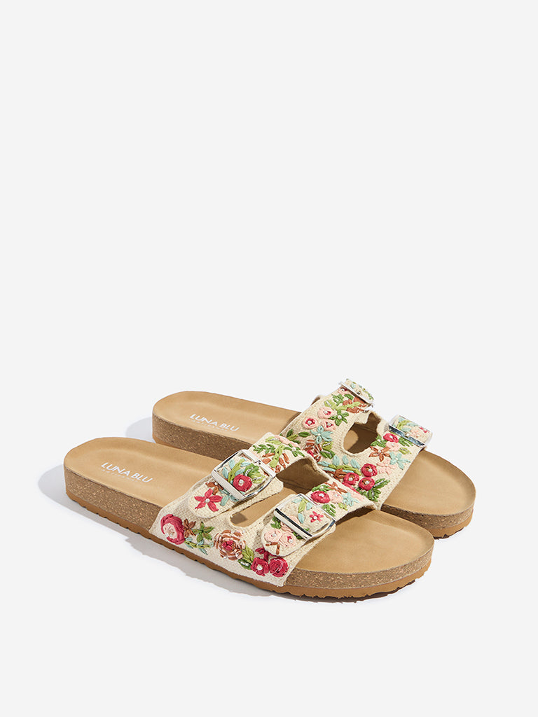 LUNA BLU Red Floral Embroidered Slip-On Sandals