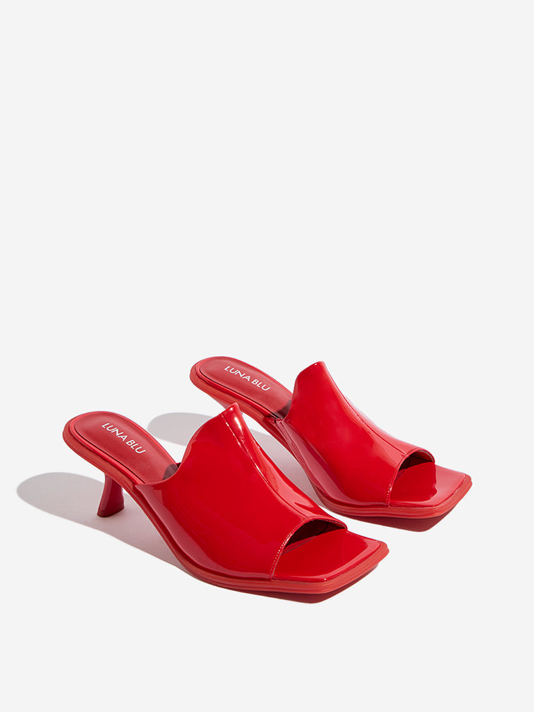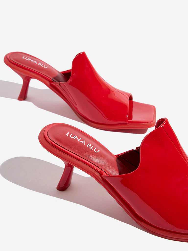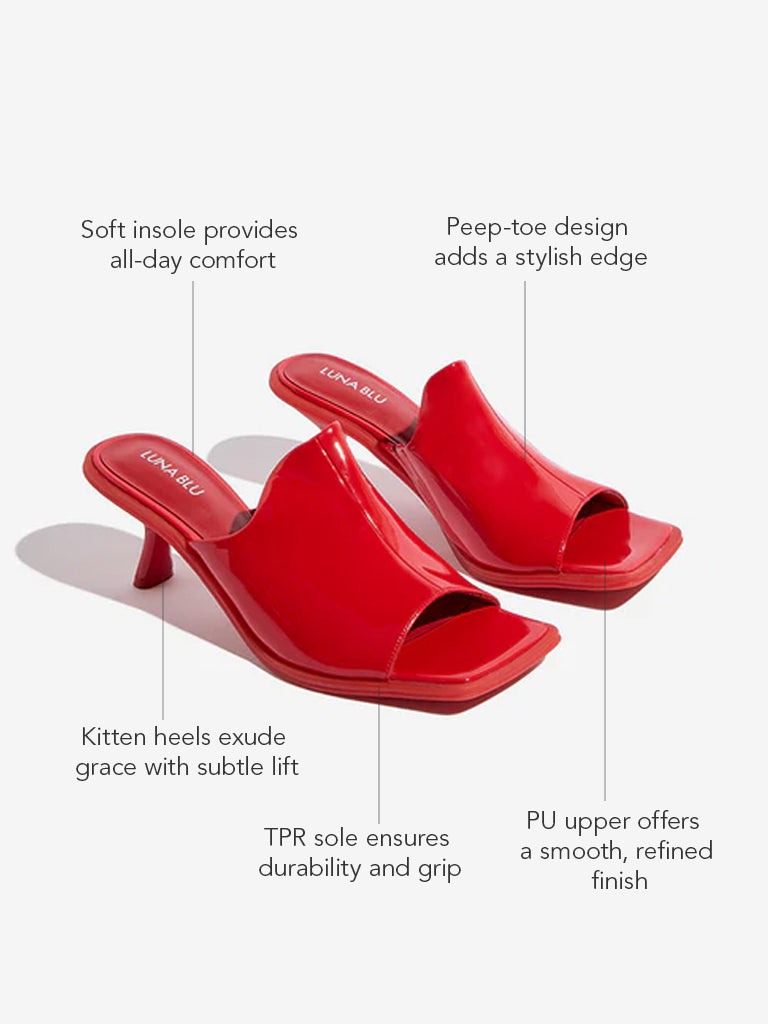 These red sandals from Luna Blu make a bold statement with their sleek kitten heel and elegant peep-toe design. Perfect for both day and evening wear. they feature a soft insole that provides lasting comfort with every step.