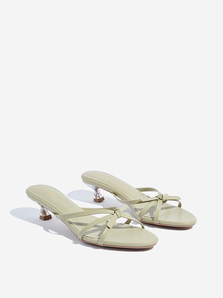These sage sandals from Luna Blu feature multiple slender straps for a contemporary look. Set on a low kitten heel. they offer gentle elevation that’s easy on the feet. The padded insole provides added comfort. making them suitable for extended wear.