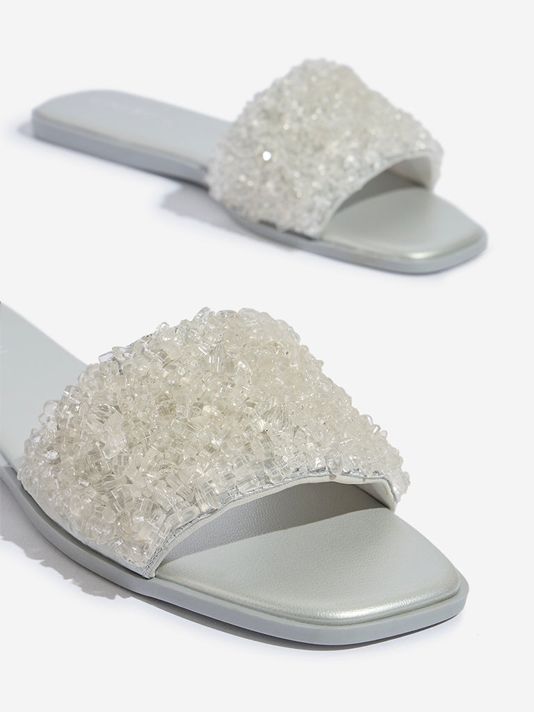 Be the first to review “LUNA BLU Silver Crystal Embellished Slides” Cancel reply