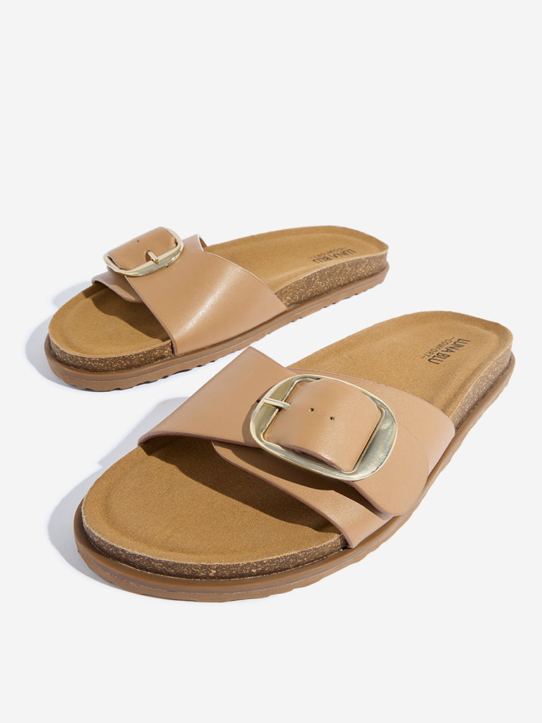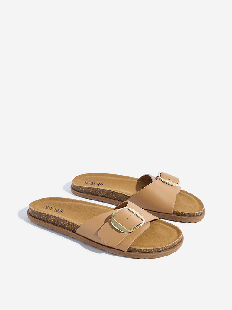 LUNA BLU Tan Buckle-Detailed Comfort Sandals
