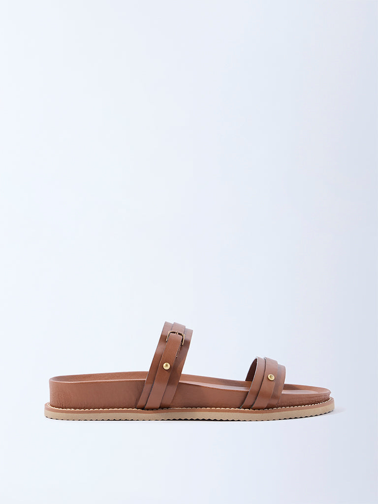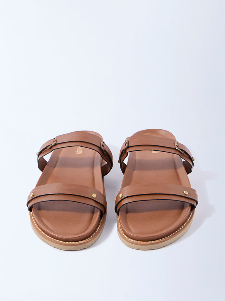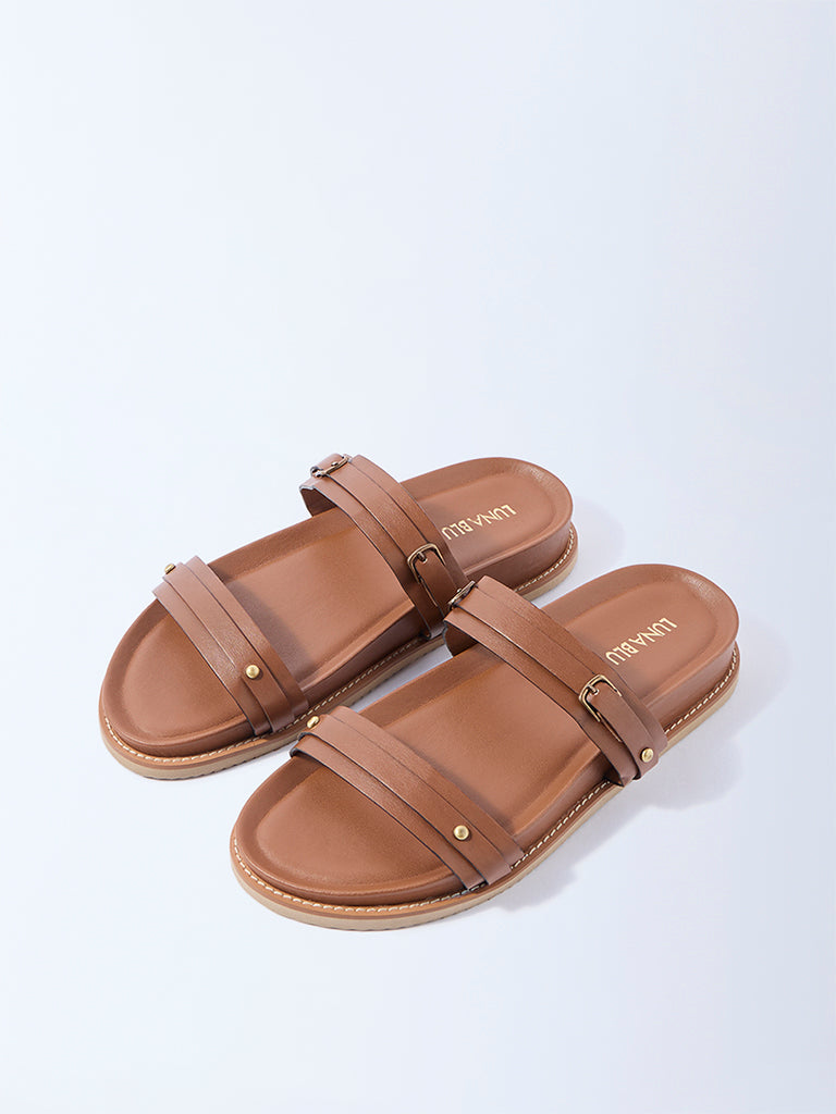 LUNA BLU Tan Dual-Strap Slip-On Comfort Sandals
