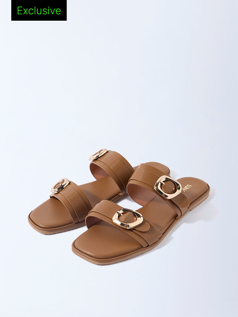 LUNA BLU Tan Dual-Strap Slip-On Sandals – Exclusive