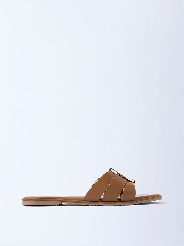 LUNA BLU Tan Hardware-Detailed Slides – Exclusive
