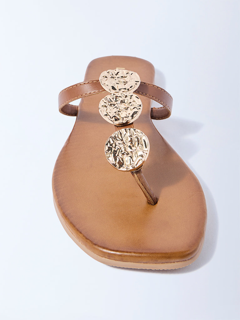 LUNA BLU Tan Hardware-Detailed Thong Strap Sandals