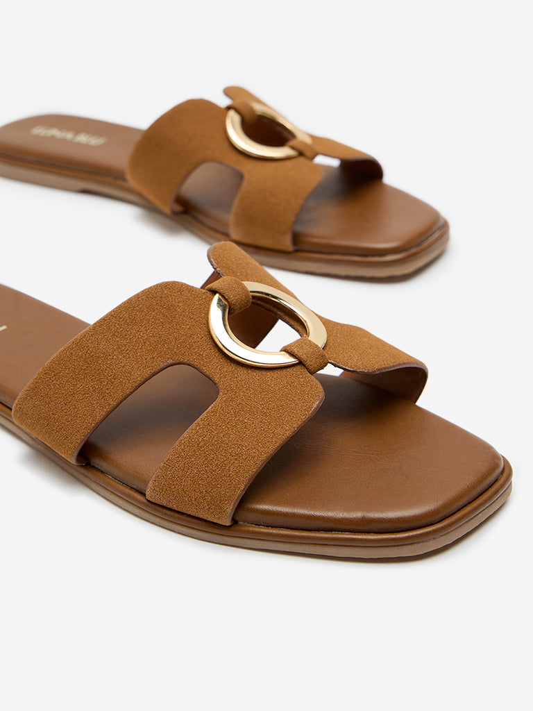Be the first to review “LUNA BLU Tan Metal-Detailed Sandals” Cancel reply