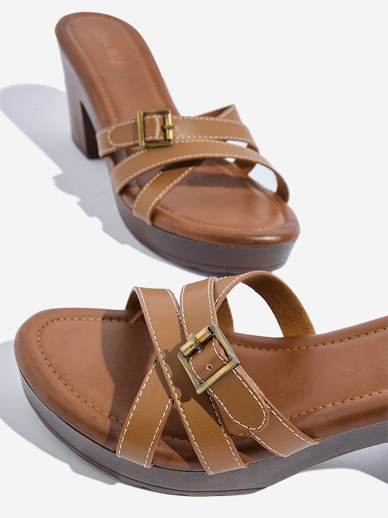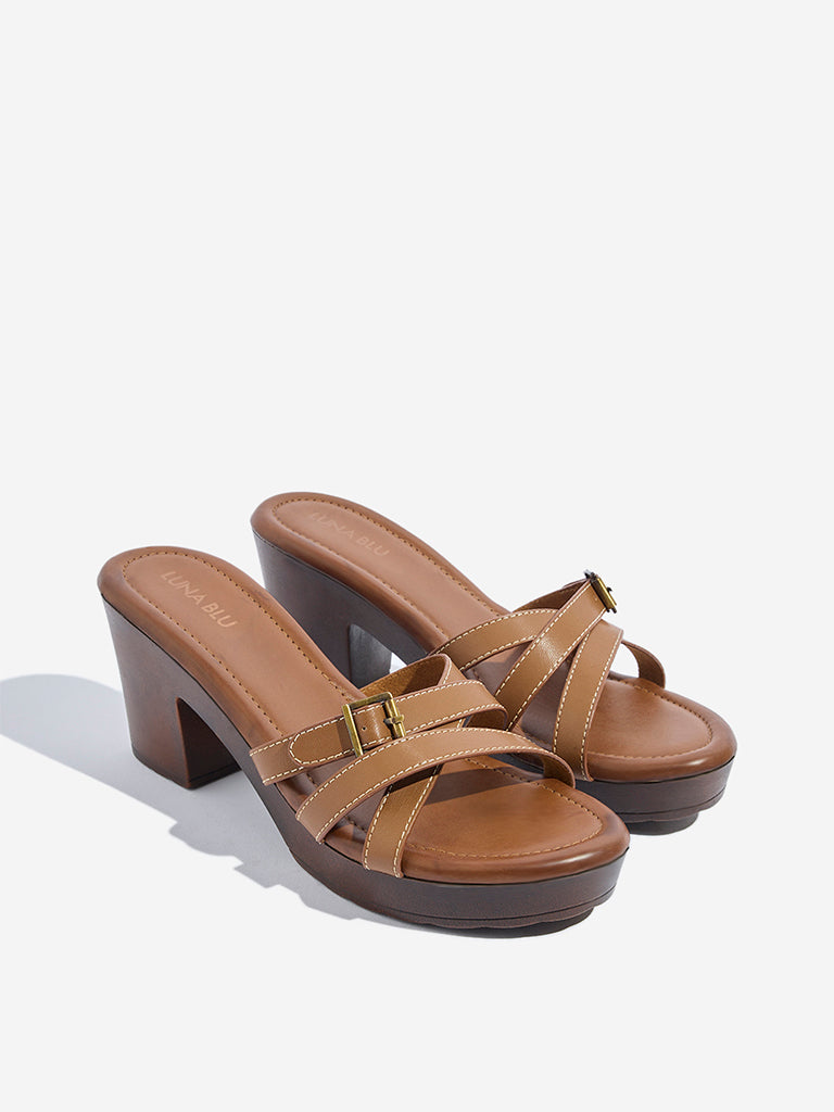LUNA BLU Tan Multi-Strap Block Sandals