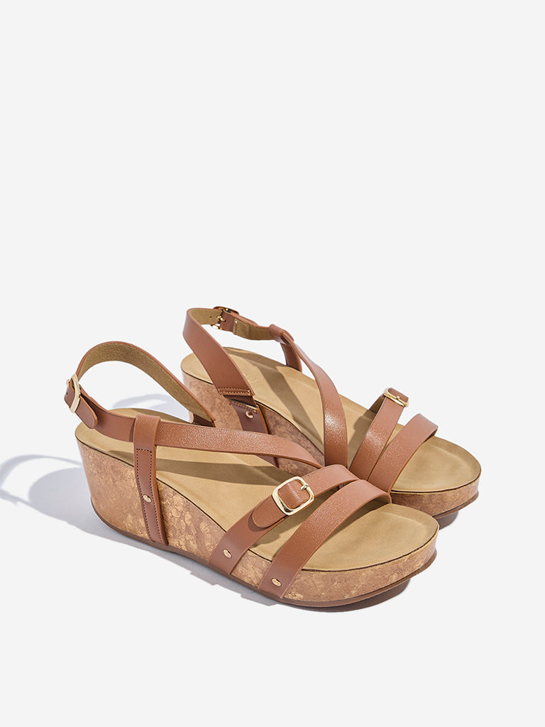 A warm-weather essential with timeless appeal. these tan sandals from Luna Blu blend style and practicality with ease. These feature elegant multi-strap detailing. a secure buckle closure. and a supportive slingback. Crafted from durable materials. they’re finished with a smooth footbed and wedge heels for all-day comfort and lift.