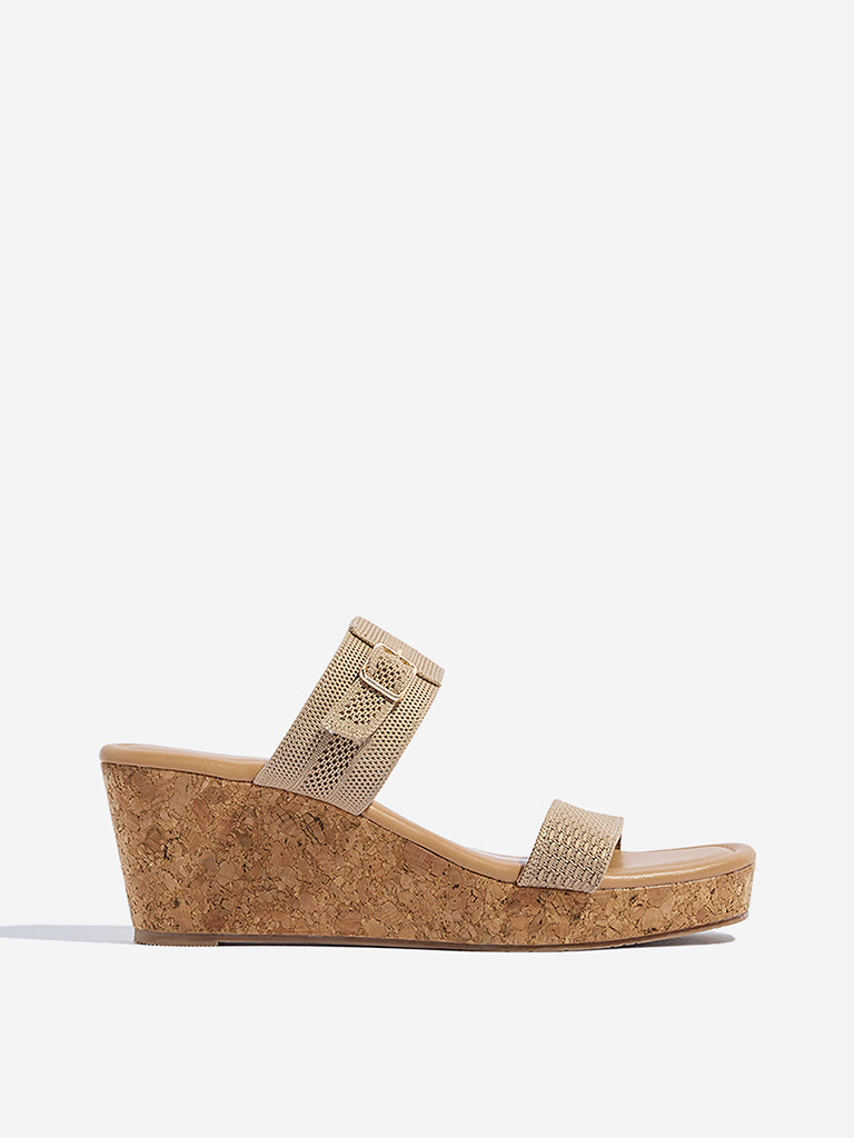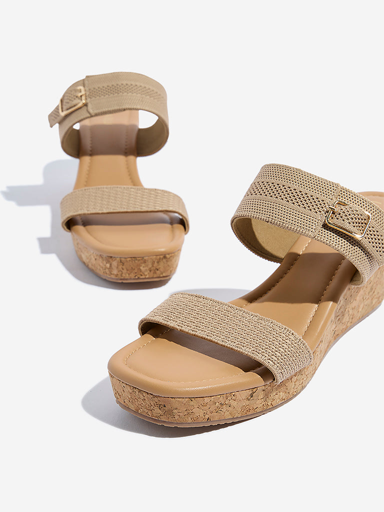 Channel relaxed sophistication with these taupe sandals from Luna Blu. Designed with dual textured straps. they’re elevated by a polished buckle detail on the upper strap for a refined finish. The cork-textured wedge heel lends a natural charm. while the cushioned insole ensures comfort that lasts from morning errands to evening plans.