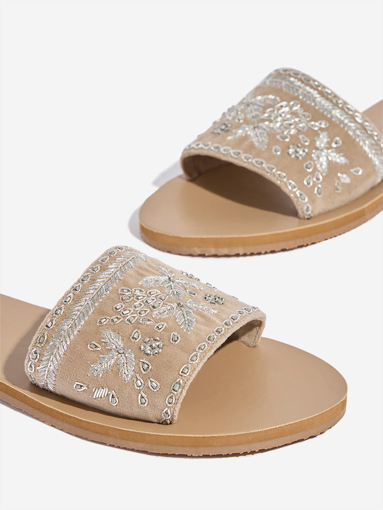 Be the first to review “LUNA BLU Taupe Embellished Slides” Cancel reply