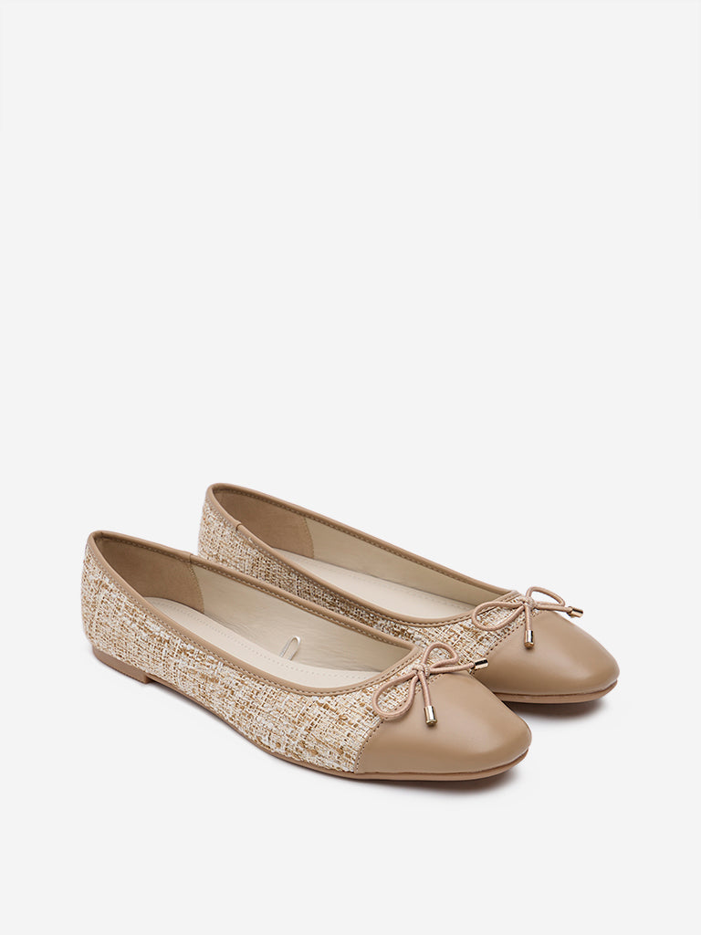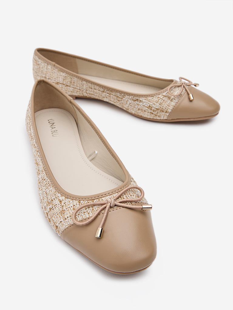 LUNA BLU Taupe Jute Bow-Detailed Ballerina