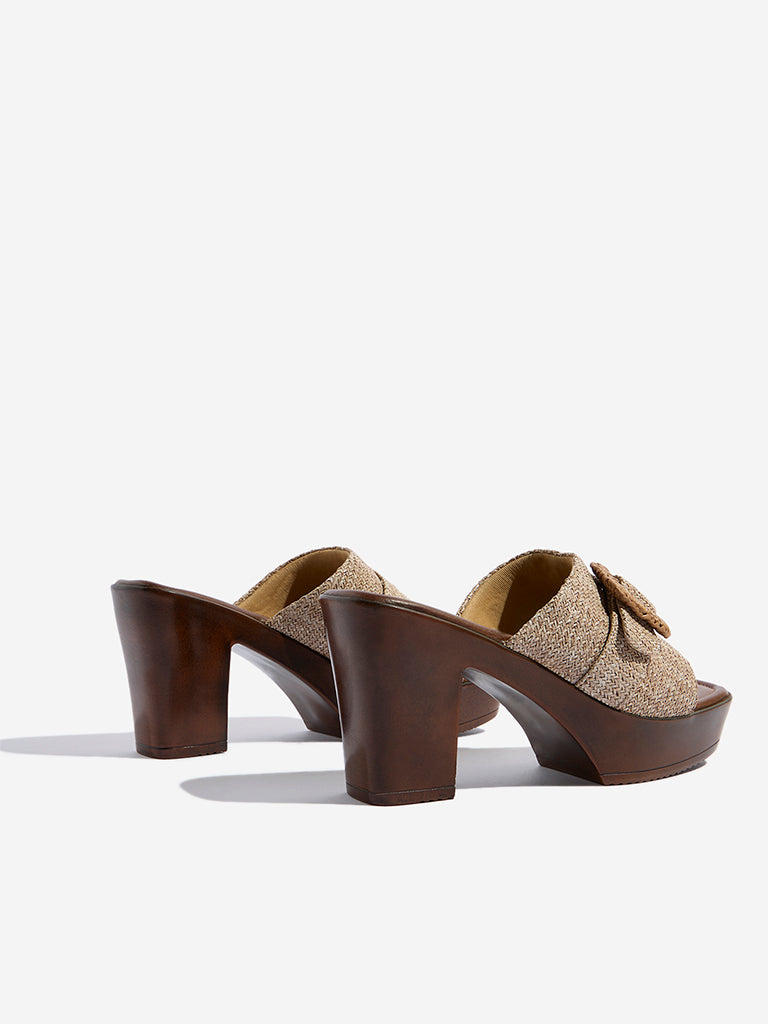 LUNA BLU Taupe Raffia-Textured Heel Sandals