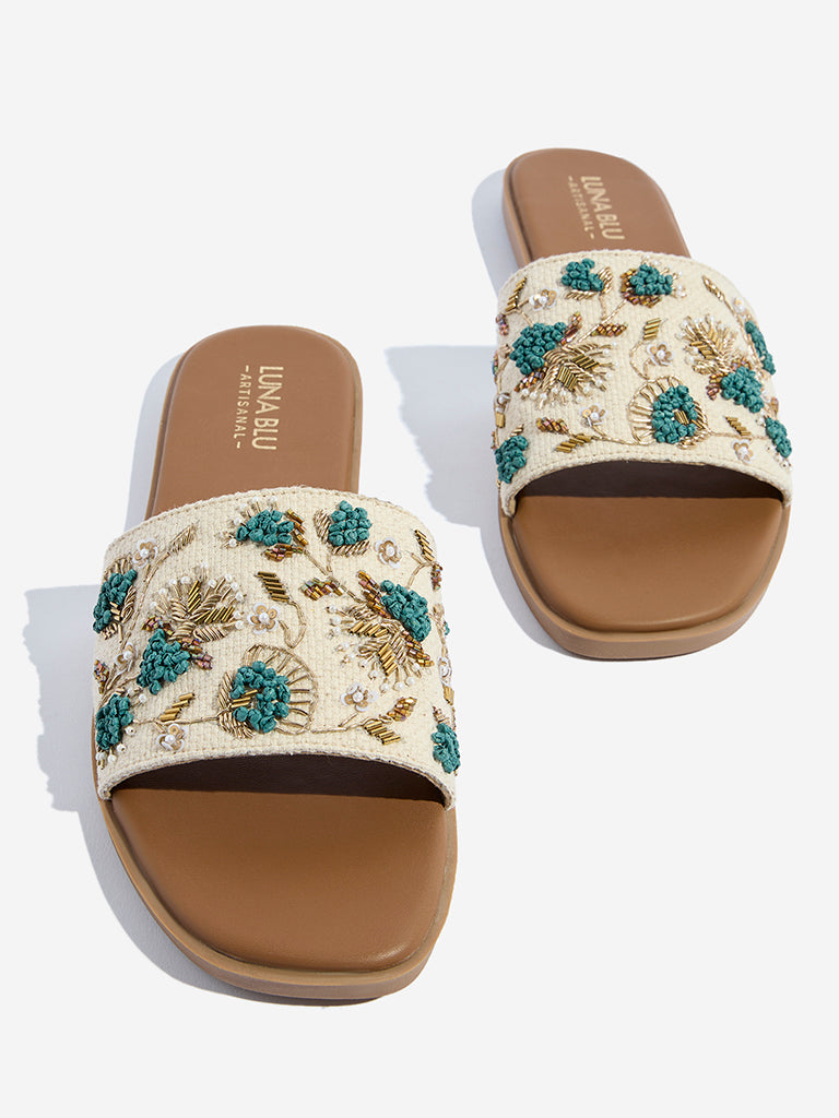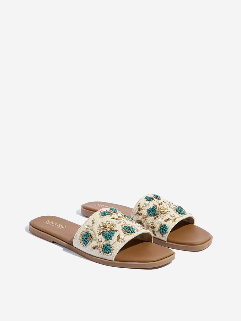 LUNA BLU Teal Embellished Slides