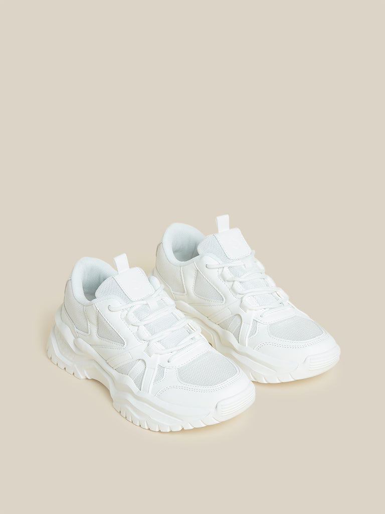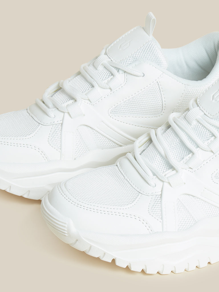 A contemporary take on streetwear styles are these white sneakers from LUNA BLU. Structured in a chunky profile with tonal mesh detailing on the body for modernity. the lace-up design features roomy interiors for endless comfort to your feet.