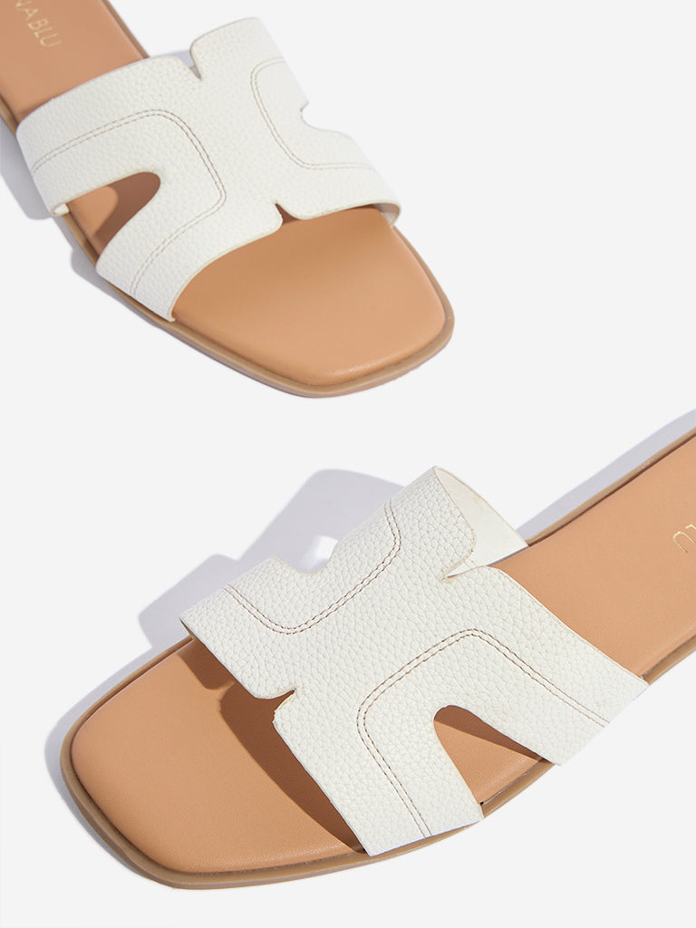LUNA BLU White Embroidered Slides