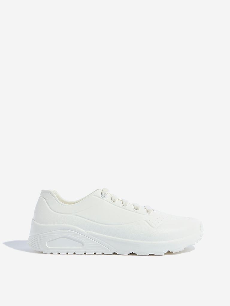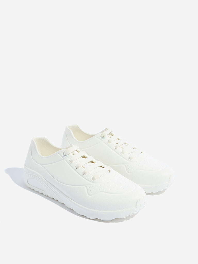 These white sneakers from Luna Blu are designed in a classic lace-up style with perforated detailing on the vamp. Crafted for comfort and style. they feature a cushioned insole and a textured outsole that ensures better grip.