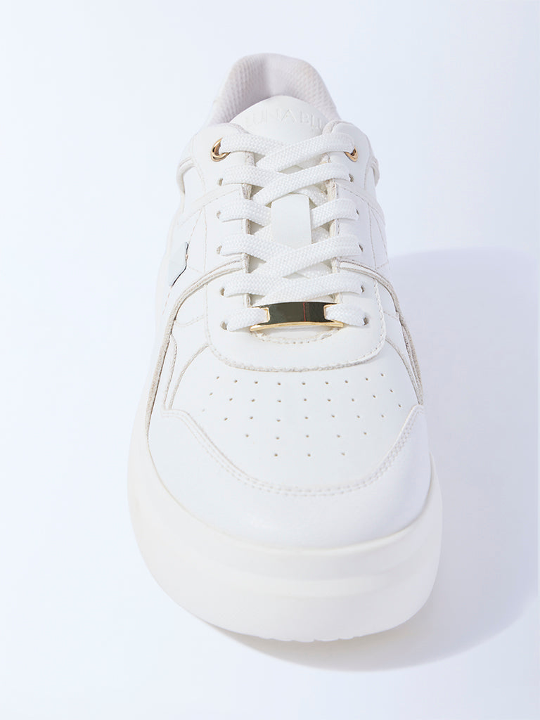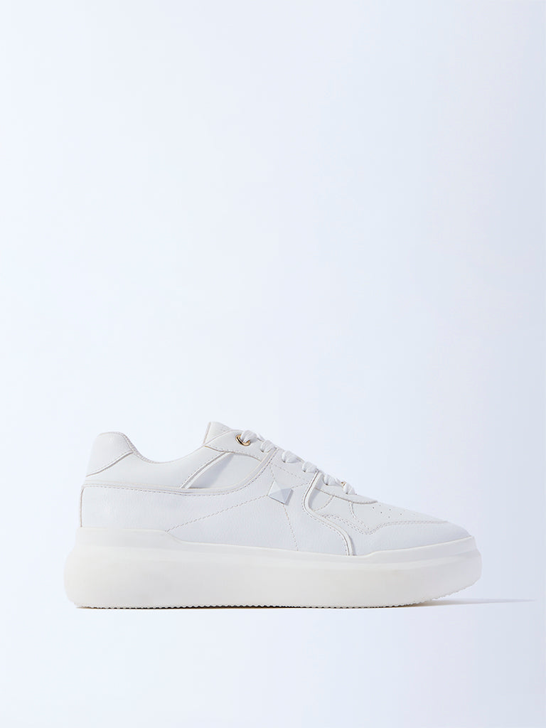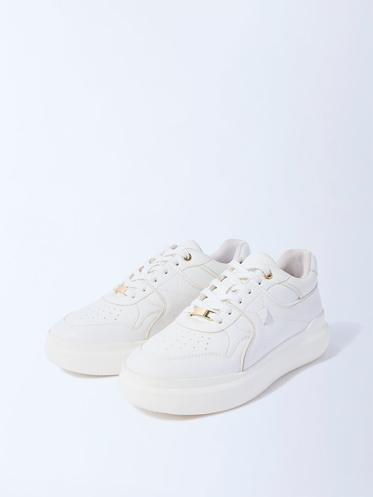 Lend a street-style edge to your look with these white sneakers from Luna Blu. The perforated vamp adds a modern twist. while chunky soles ground the pair with structure and attitude. Balanced by a cushioned footbed and ridged outsole. they promise ease and grip through every stride.