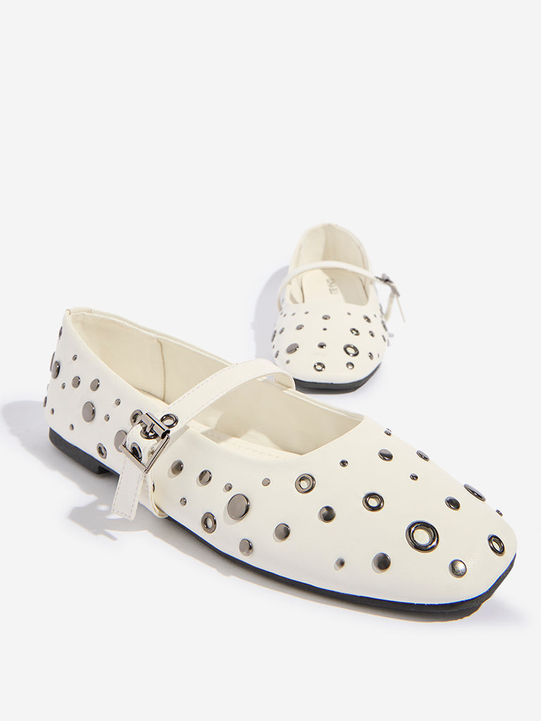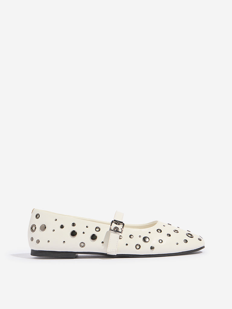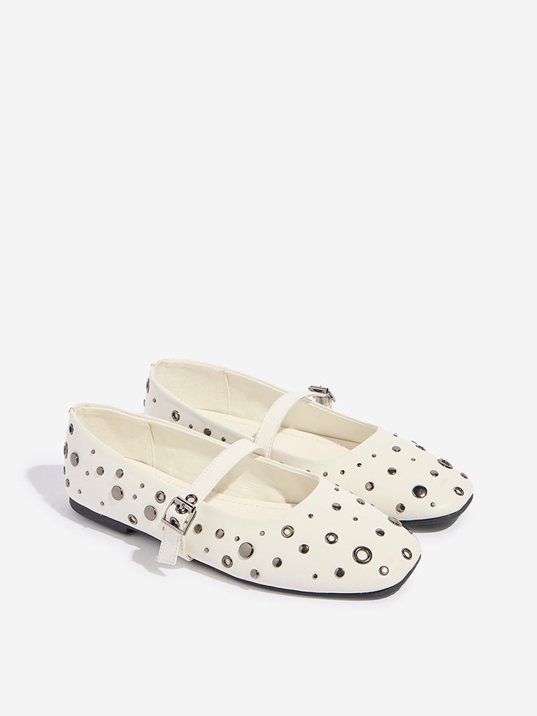 LUNA BLU White Stud-Detailed Mary Jane Shoes