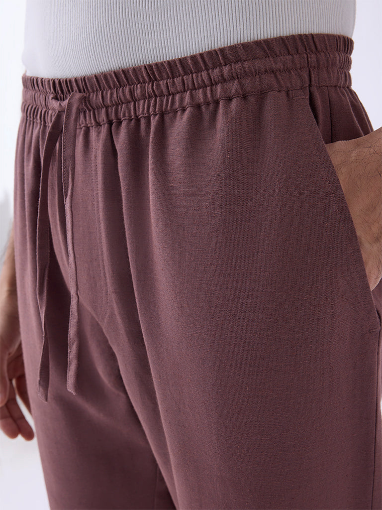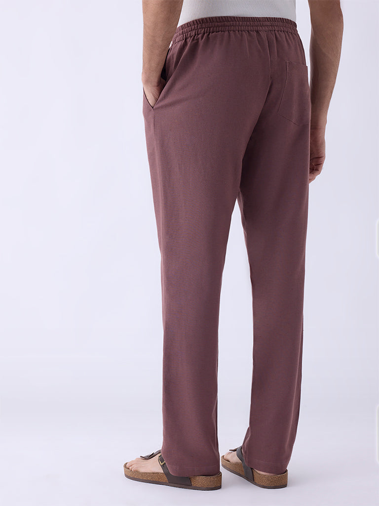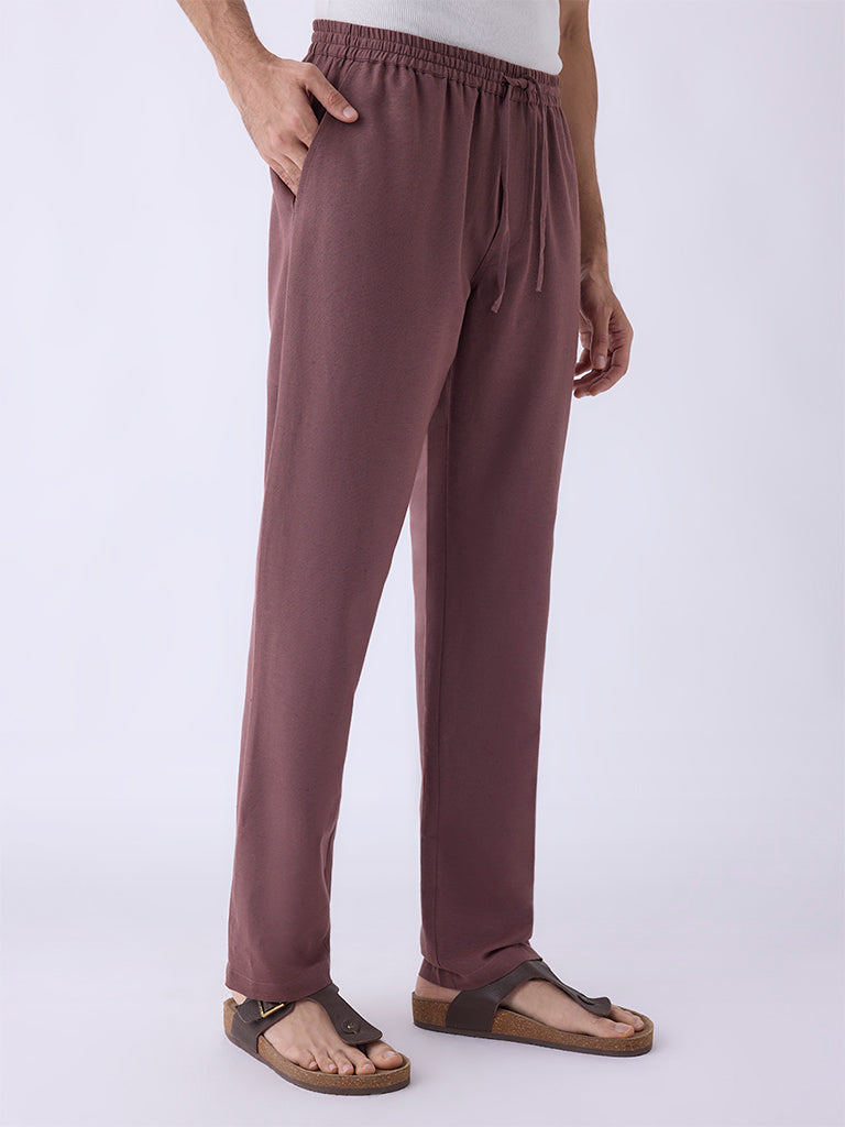 Mens Ethnicwear Mauve Solid Relaxed-Fit Mid-Rise Pants